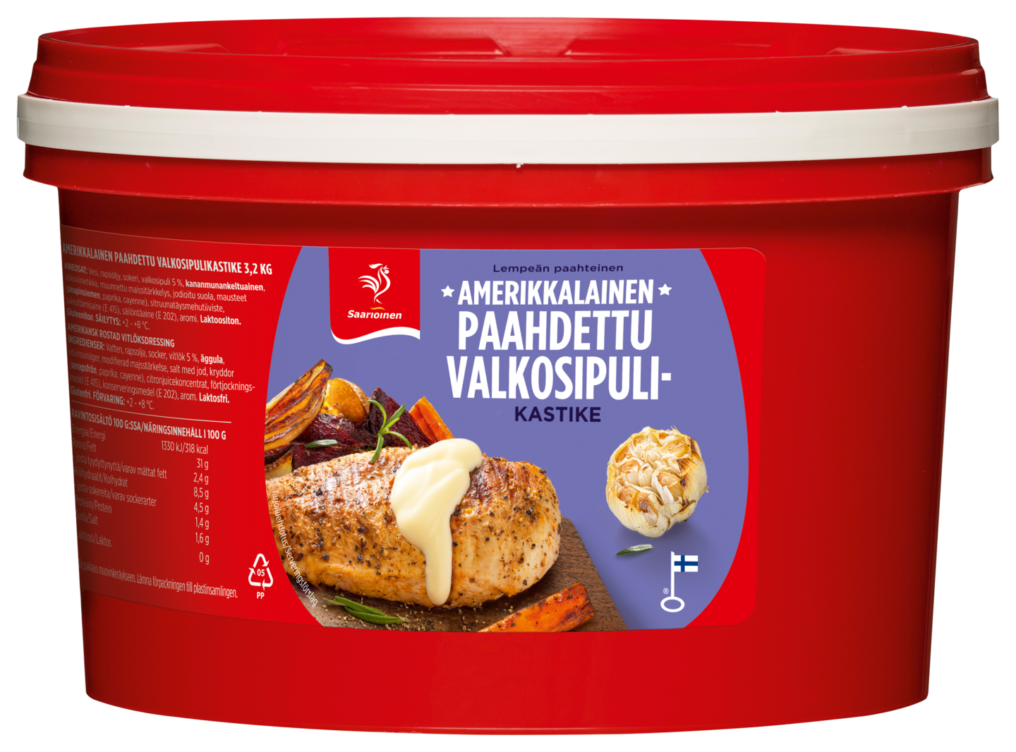 LaktoositonSaarioinen Amerikkalainen paahdettu valkosipulikastike on legendaarisen Amerikkalaisen kastikkeen serkku! Herkullisessa, vaaleassa ja sopivan sakeassa kastikkeessa tunnet aidon valkosipulin rouheuden. Kastike on erinomainen dippailukastike ranskanperunoille tai vaikka kanansiiville. Kokeile myös grillatun kalan kastikkeeksi. Tähän jäät koukkuun!