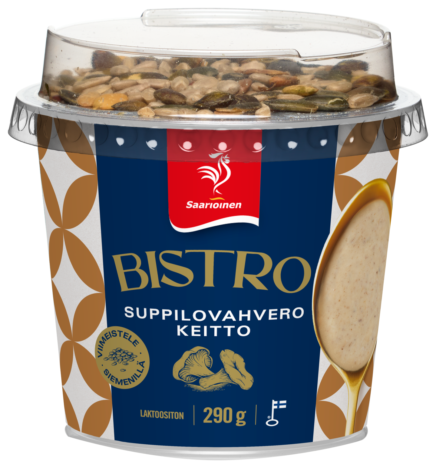 Koe Bistro ja aisti eurooppalainen ravintolatunnelma! Keitimme ravintolatasoisen sienikeiton maistuvista suppilovahveroista. Maustoimme runsaan täyttävän ja kermaisen suppilovahverokeiton timjamilla ja viherpippurilla. Jokainen lusikallinen on makukokemus, jonka voit viimeistellä kurpitsan-, auringonkukan-, chian ja pellavansiemenripotteella lisäämällä ne höyryävän lämpimän keiton pinnalle tuomaan rapeutta. Saarioinen on Suomen luotetuin valmisruokamerkki.
