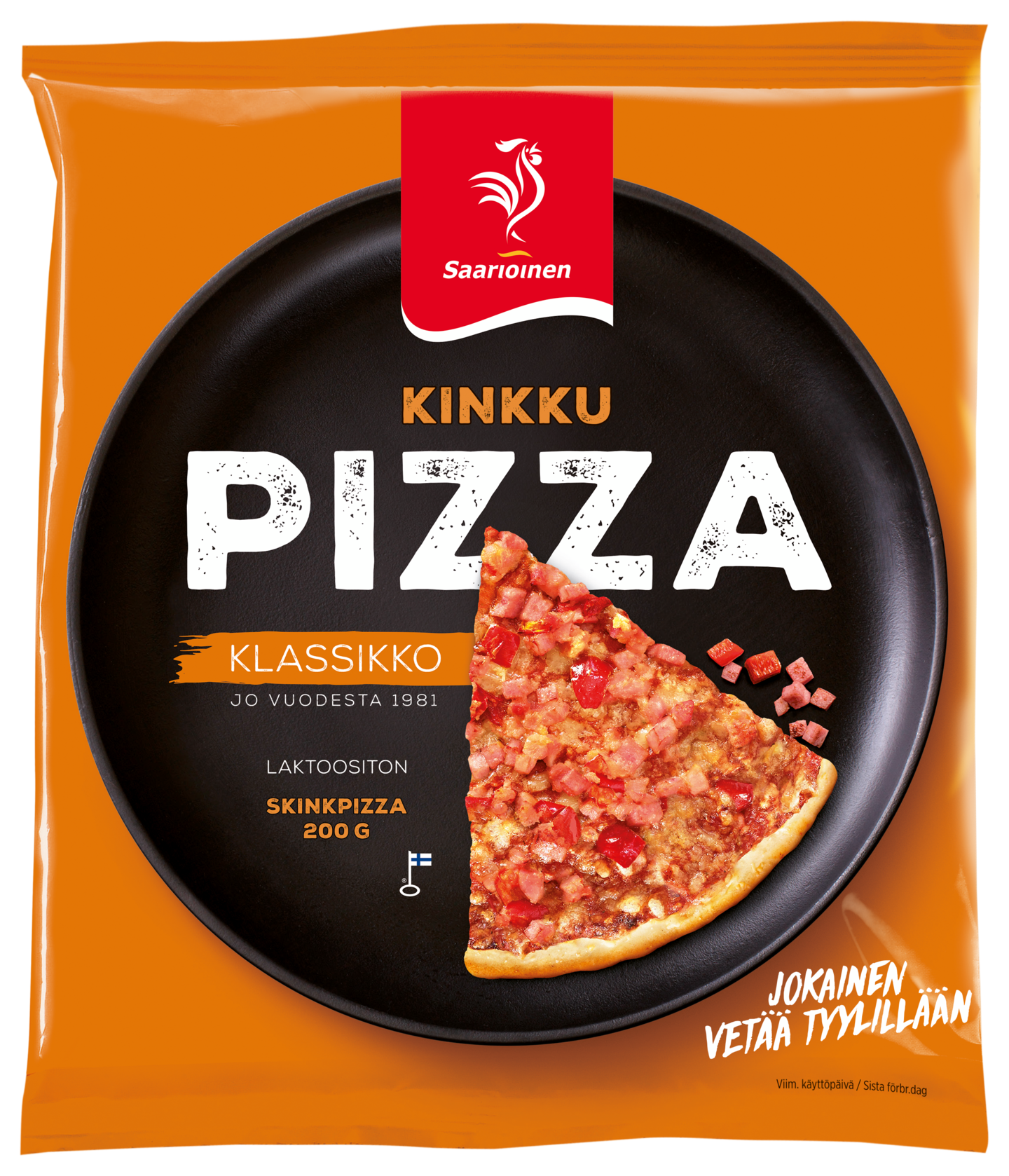 LaktoositonTämän klassikkopizzan täytimme täyteläisen tomaattisella kastikkeella sekä herkullisella kinkulla. Tässä klassikossa pizzataikina on perinteisesti hiivalla kohotettu ja ihanan rapeaksi pizzauunissa paistettu. Näitä rakastettuja legendaarisia klassikkopizzoja olemme paistaneet jo vuodesta 1981. Saarioinen on Suomen luotetuin valmisruokamerkki.