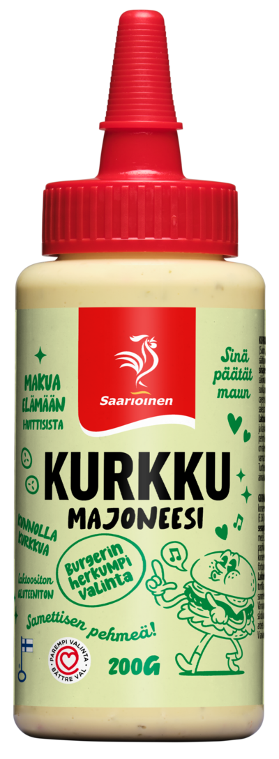 LaktoositonBurgerit, hodarit, ranskalaiset, tacot, tortillat ja kasvistikut sekä muut grilliherkut - kaikkiin näihin sopii samettisen pehmeä kunnolla kurkulla maustettu majoneesimme. Majoneesimme on valmistettu Huittisissa, aidoista laadukkaista raaka-aineista, joten voit varmasti luottaa tuotteiden laatuun ja tukea samalla suomalaista työtä. Tuotteiden valmistuksessa on huomioitu vastuullisuus, käytämme ainoastaan vapaiden kanojen munia.