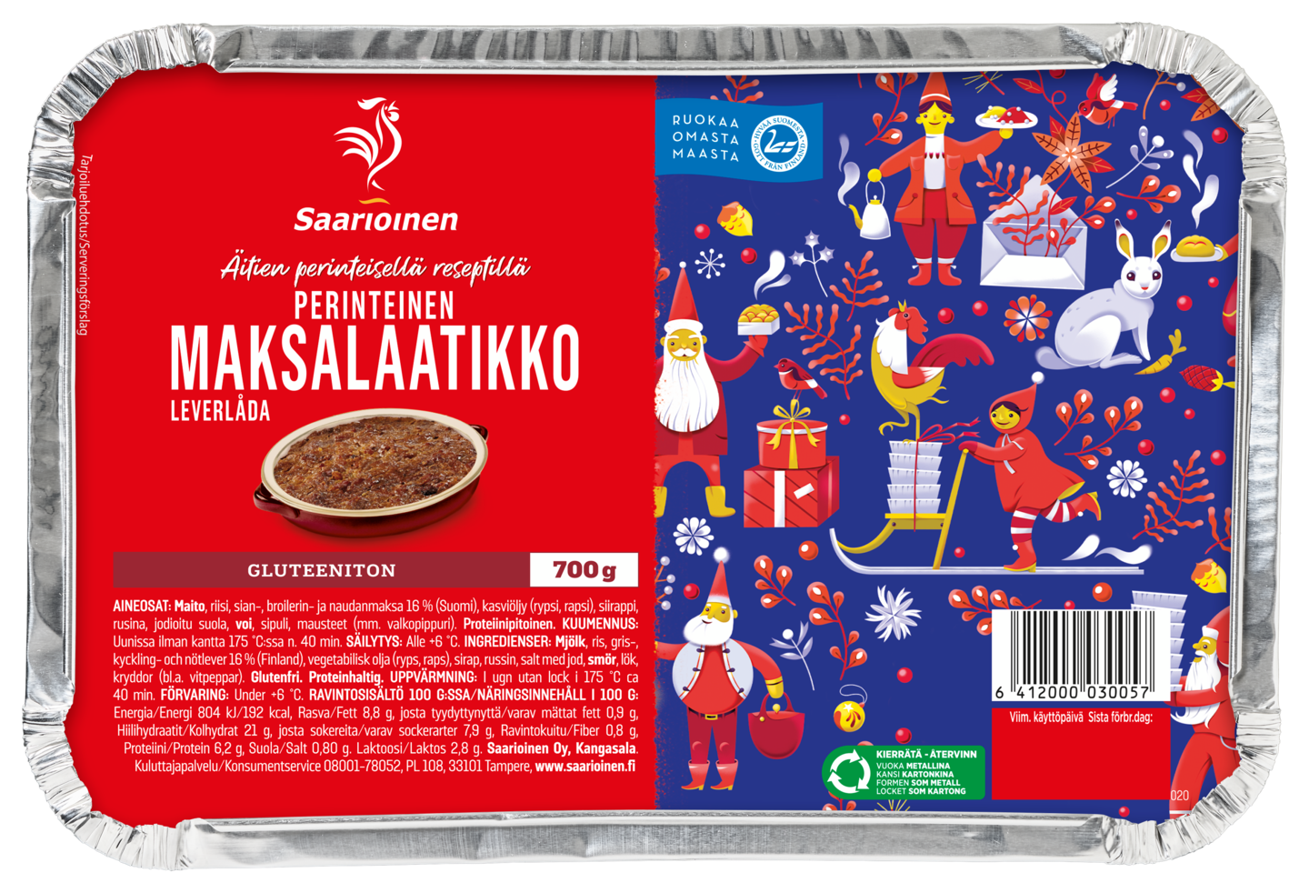 Maksalaatikon valmistuksessa ei pidä tehdä kompromisseja. Perinteinen maksalaatikkomme on valmistettu lempeästi haudutetusta riisistä ja jauhetusta maksasta. Täyteläistä maksan makua pyöristimme siirapilla ja rusinoilla. Meillä laatikon paistossa ei hätäillä, vaan pehmeän makuiset laatikot kypsyvät hitaasti uunissa paistajan valvovan silmän alla. Saarioinen on Suomen luotetuin valmisruokamerkki. Tuotetta myydään sekä tuoreena että pakasteesta sulatettuna, jolloin kannessa on maininta pakastuksesta. Sulatettua tuotetta ei saa pakastaa uudelleen.