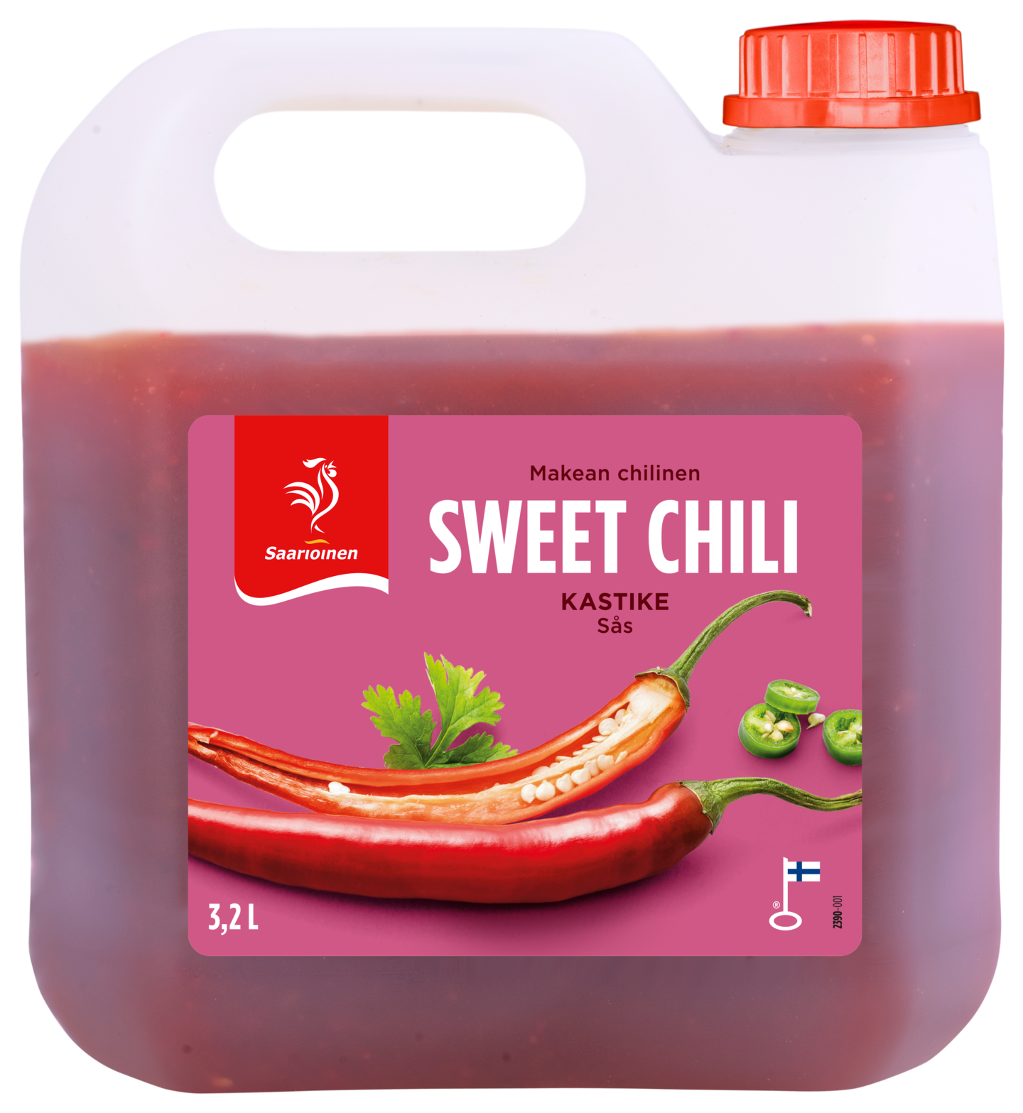 VegaaninenSaarioinen Sweet chili -kastike on chilillä maustettu makea kastike ja se sopii erinomaisesti kylmänä kastikkeena aasialaistyyppisen tarjonnan maustamiseen sekä salaattikastikkeeksi kaikkiin salaatteihin.