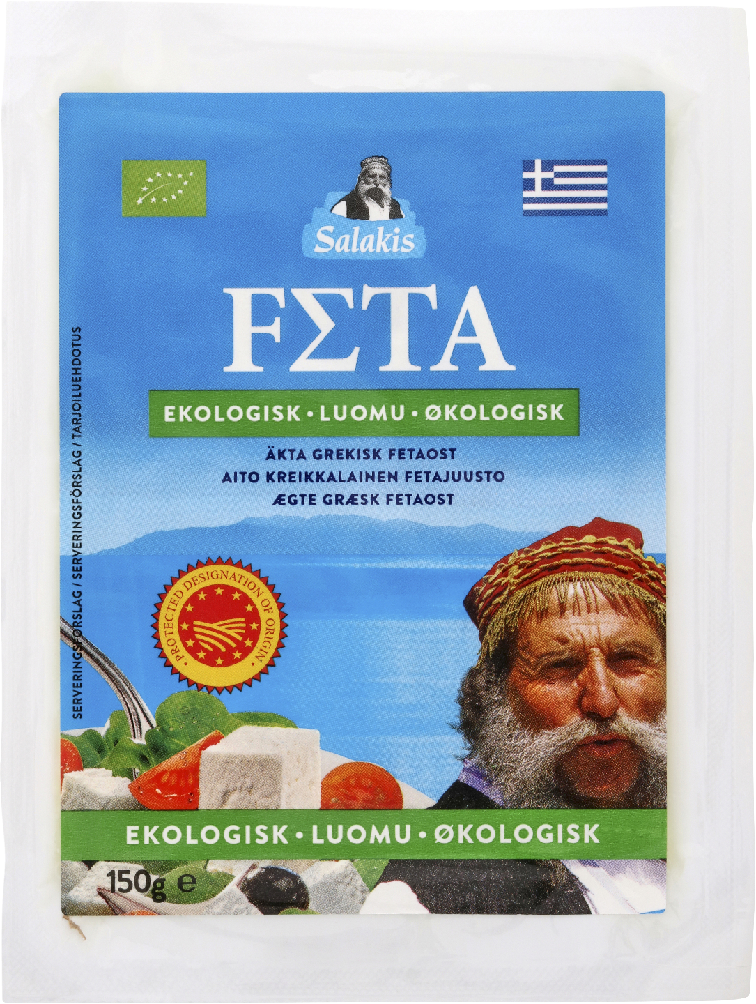 Salakis Feta on alkuperäsuojattu DOP-juusto. Juusto on väriltään valkoista ja se on ollut suolavedessä. Maku on hieman suolainen, hapan ja täyteläinen. Käytä Salakis Fetaa salaateissa tai lämpimissä ruoissa.