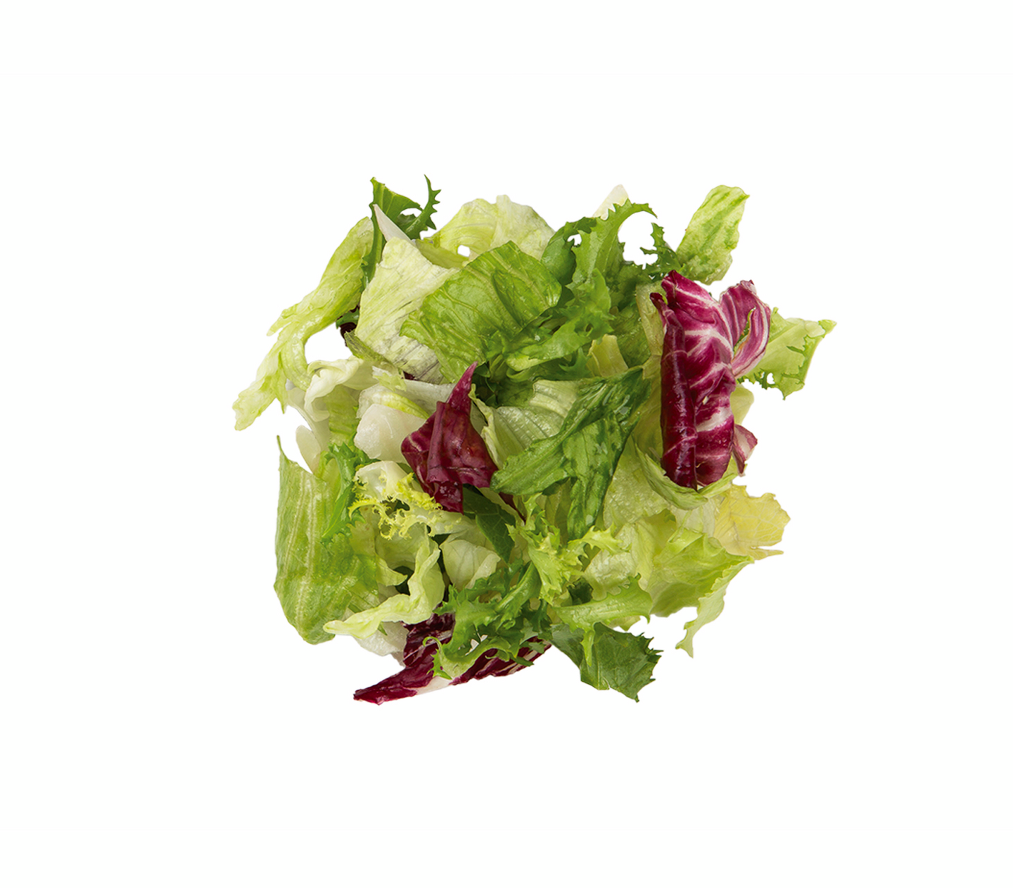 VegaaninenPrinsessasalaatin pohjana on raikas amerikansalaatti ja lisämakuja ovat antamassa romainesalaatti, frisee ja punasalaatti.