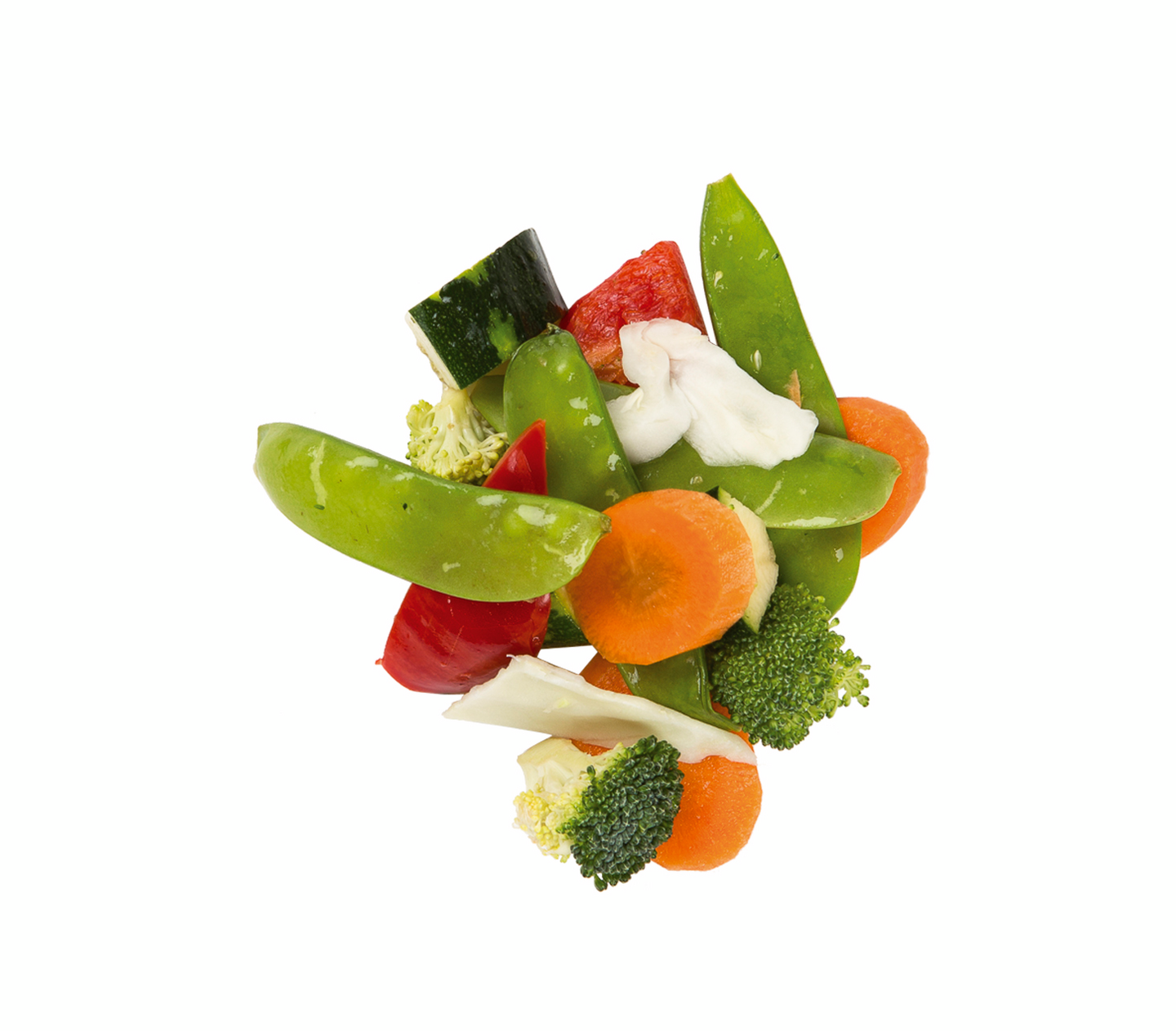 Kesäkurpitsa, valkokaali, paprika punainen, porkkana, parsakaali ja sokeriherne.