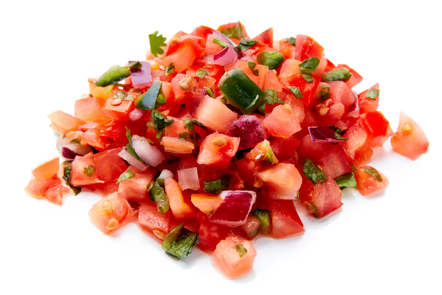 Tomaatti, punasipuli, jalapeno, sokeri, korianteri, jodioitu suola. Pakattu suojakaasuun.