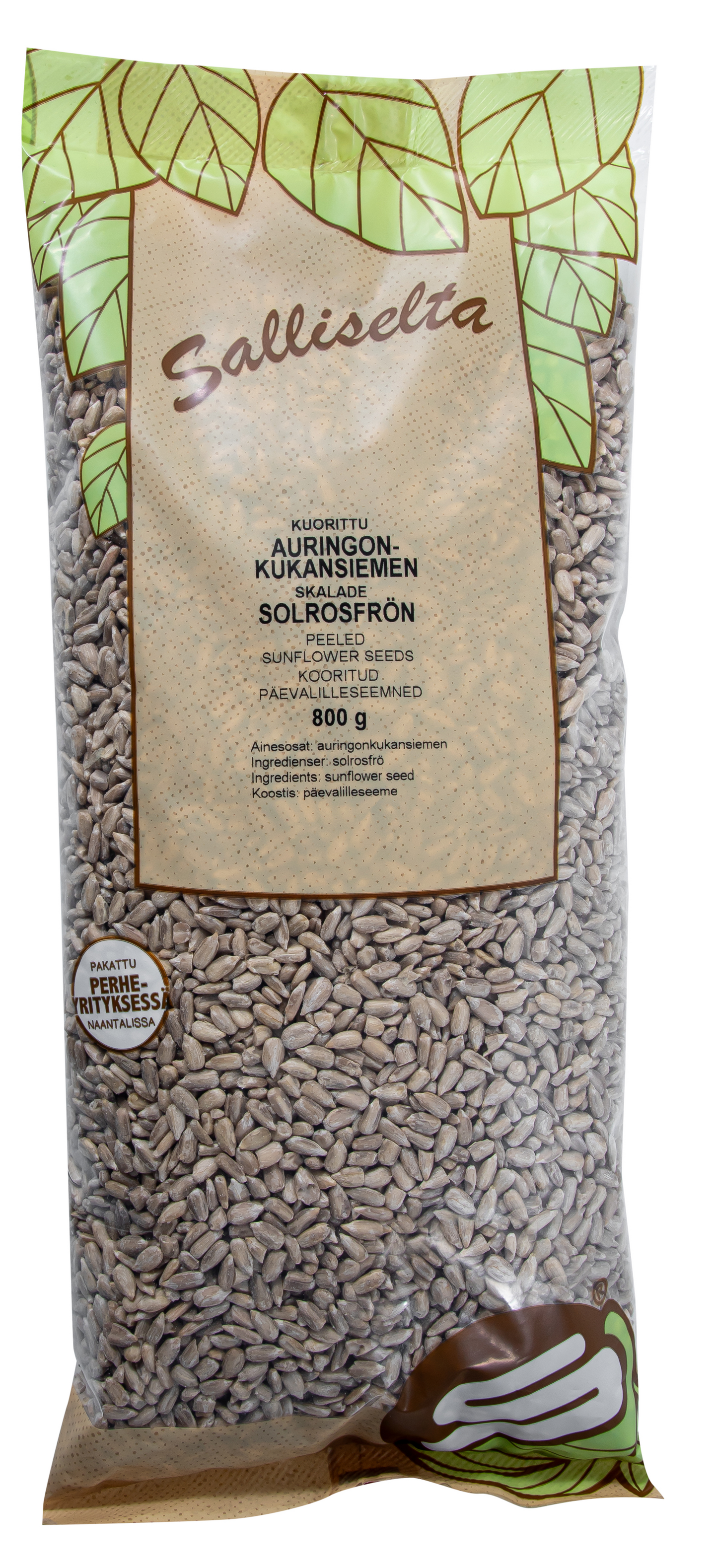 Auringonkukansiemenet ovat nimensä mukaisesti peräisin auringonkukista. Siemenen kova kuori poistetaan ja sisältä paljastuu miedon pähkinäisen makuinen vaalea sisus. Ne sopivat niin sellaisinaan syötäviksi kuin ruoanlaittoon ja leivontaankin. Voit paahtaa auringonkukansiemeniä kevyesti pannulla niin saat niistä rapeampia. Salliselta tuotteet pakataan Suomessa.