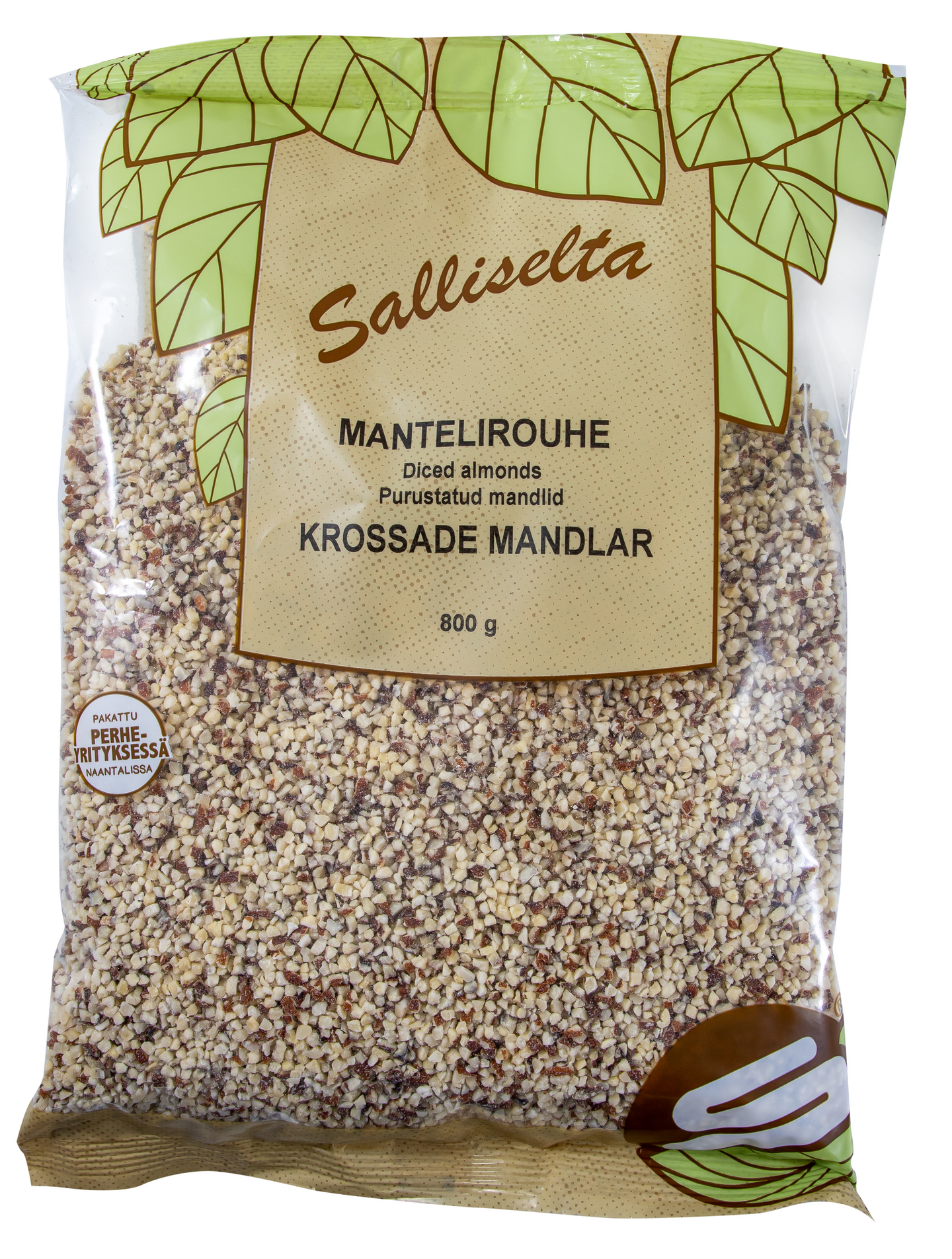 Manteli on myös luontaisesti gluteeniton, joten se sopii gluteenitonta ruokavaliota noudattaville. Mantelirouhe sopii myös leivontaan ja jälkiruokiin, sillä saat rouskuvaa maukkautta leivoksiin ja kauniita pintoja kakkuihin tai pulliin. Salliselta tuotteet pakataan Suomessa.