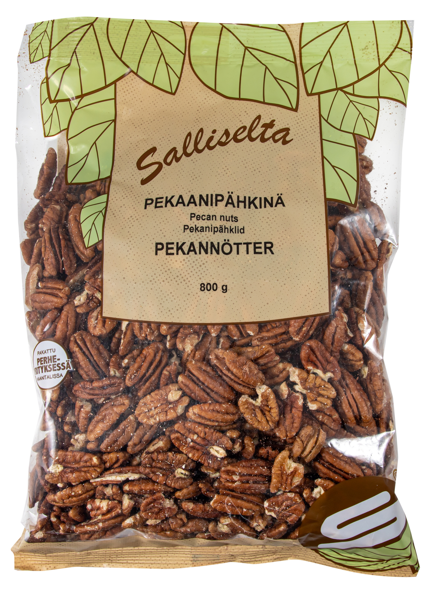 Pekaanipähkinää käytetään yleisesti leivonnaisissa ja ruuanlaitossa. Sen toffeinen maku soveltuu erinomaisesti esimerkiksi makeisiin piiraisiin sekä kekseihin. Pekaanipähkinät herkuttelet myös sellaisenaan! Salliselta tuotteet pakataan Suomessa.