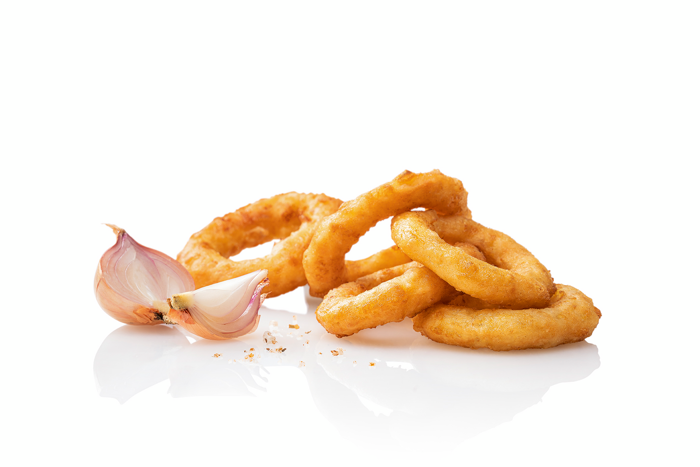 Sipulit (57%), VEHNÄJAUHO, auringonkukkaöljy, vesi, maissijauho, suola, hyytelöimisaine (natriumalginaatti), dekstriinit, dekstroosi, mausteet, stabilointiaine (natriumfosfaatti), nostatusaineet (difosfaatti, natriumkarbonaatit).