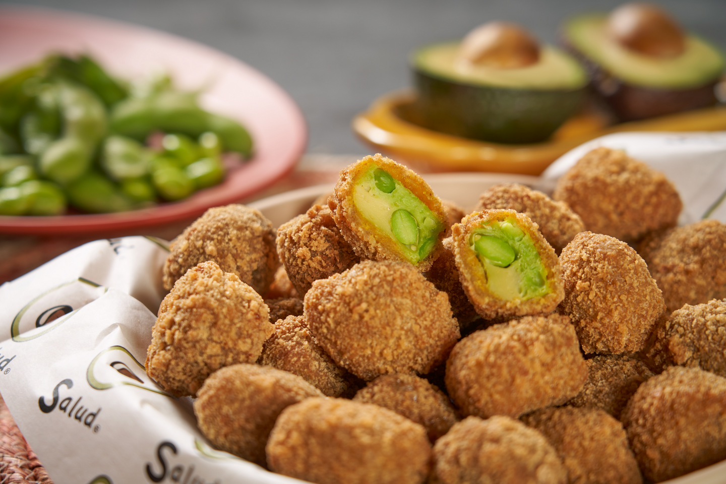 Herkullinen yhdistelmä avokadoa ja edamame-papuja rapeassa katsu-currykuorrutteessa. Yhden palan paino keskimäärin 15g.