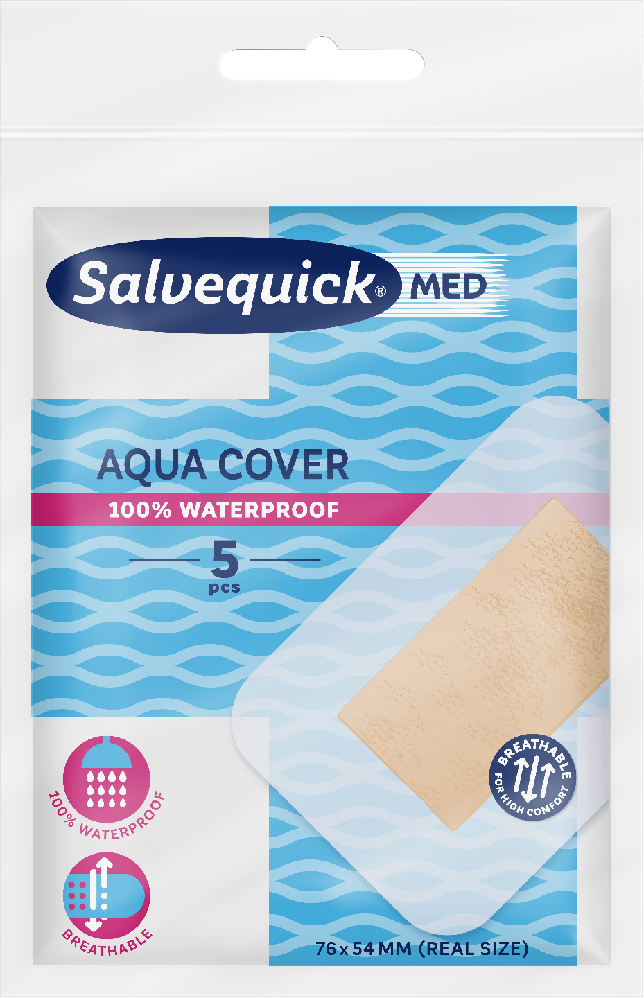 Salvequick MED Aqua Cover on täysin vedenpitävä, erittäin ohut ja hengittävä laastari. Nopeuttaa haavan paranemista ja ehkäisee arpien muodostumisen riskiä. Laastari kiinnittyy hyvin kaikilla reunoilla olevan liimapinnan ansiosta. Sopii suuriin pintahaavoihin, kuten leikkaushaavoihin ja hiertymiin. CE-merkitty lääkinnällinen laite. CE 0413. Valmistaja: Orkla Care AB.