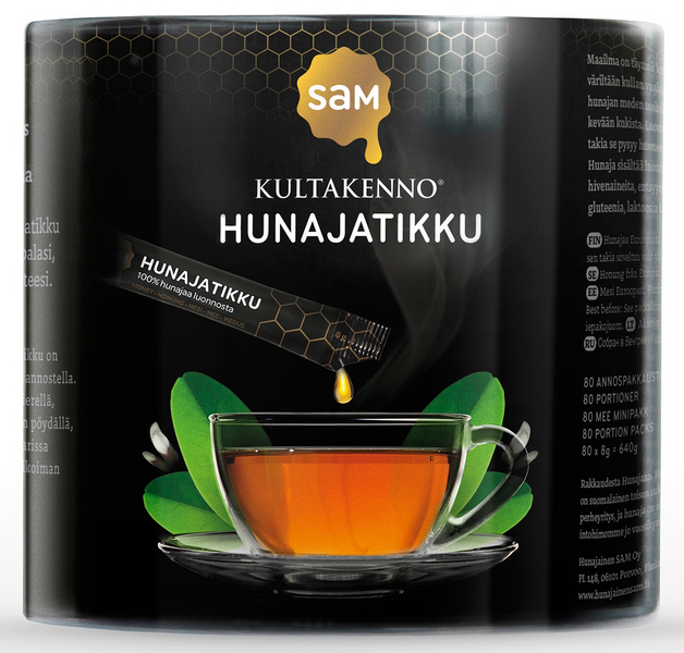 Hunajainen SAM Oy on suomalainen toisen sukupolven perheyritys ja intohimonamme on aina ollut puhdas ja aito hunaja. Tämän väriltään kullanvaalean ja maultaan makean hunajan mehiläiset ovat keränneet Akaasiasta ja muista kevään kukista. SAM Hunajatikku on 100% hunajaa, jonka voit ottaa helposti mukaasi, missä ikinä kuljetkin ja kuinka nopeasti ikinä liikutkin.