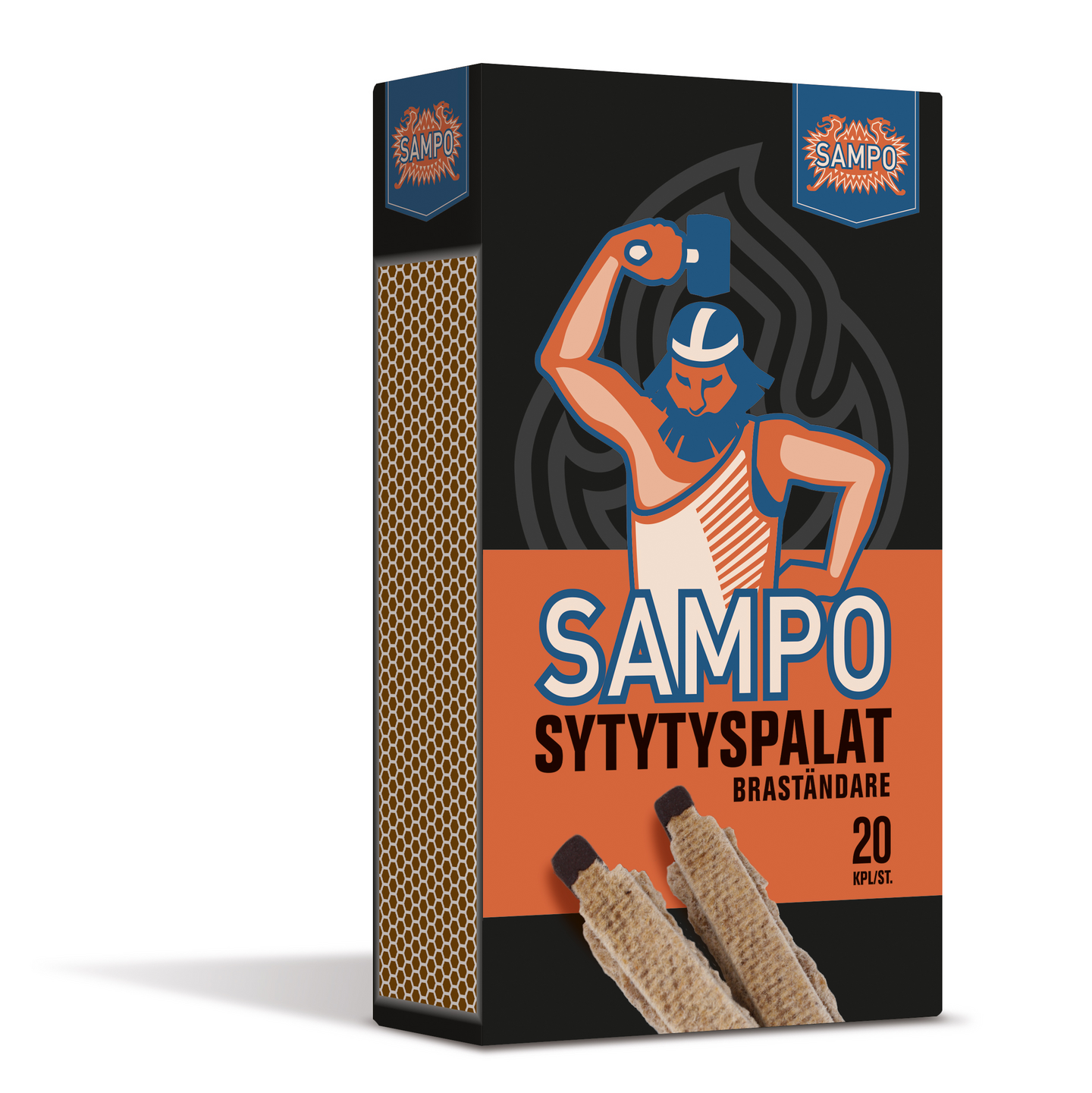 SAMPO 20kpl SYTYTYSPALA on tulitikun tapaan raapaistava sytytyspala, joka on valmistettu parafiinista ja puumassasta. Palamisaika 8 min.