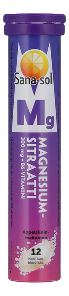 Sana-sol magnesiumsitraatti 300mg + B6-vitamiini appelsiininmakuinen 12 poretablettia 78g