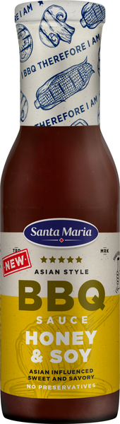 VegaaninenSanta Maria BBQ Sauce Honey & Soy on tumma, tasapainoinen barbeque-ikastike, jossa on hunajan ja soijan makua. Tasapainoinen yhdistelmä suolaista ja makeaa sekä soijan syvää umamin makua! Täydellinen kasvisten, lihan, kanan ja kalan kanssa. Voidaan käyttää pöytä- ja grillauskastikkeena, jonka avulla saa rapean grillipinnan ja ihanan, astetta makeamman maun.