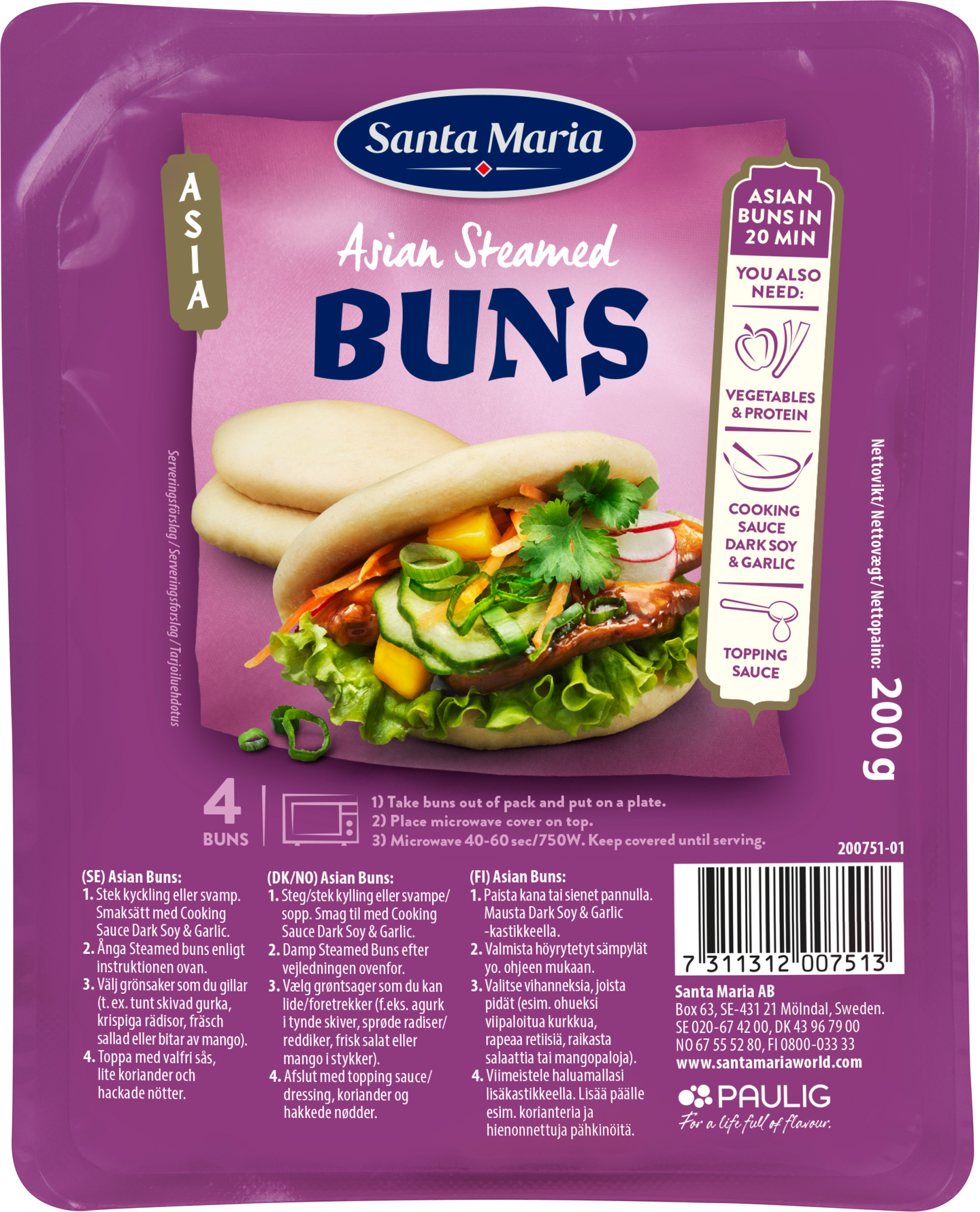 Santa Maria Asian Steamed Buns Bao 200g