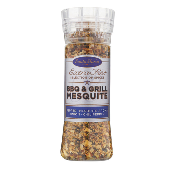 Kätevä pippurimylly herkullisella savuisella mesquite-mausteella. Tämä mauste antaa ruoalle valloittavia BBQ:lle tyypillisiä makuja: paahdettua Mesquite-puuta, paahdettua valkosipulia, mustapippuria ja Välimeren suolaa. Santa Maria BBQ & Grill Mesquite on täydellinen mauste mihin tahansa grilliruokaan kuten grillatulle lihalle, hampurilaisille, ribseille, kanalle tai grillatuille vihanneksille. Sopii myös muihin annoksiin, kuten Tex Mex -ruokiin.