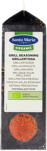 VegaaninenLuomugrillimauste, jota voi käyttää moneen tarkoitukseen. Sopii täydellisesti jauheliharuokien ja marinadien maustamiseen tai broilerin, lihan ja paistettujen perunoiden kanssa.