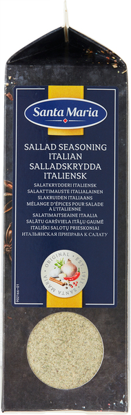 Suola, sipuli, valkosipuli, yrtit (persilja, oregano, basilika, timjami, rakuuna, salvia), rypälesokeri, purjosipuli, paakkuuntumisenestoaine (piidioksidi).