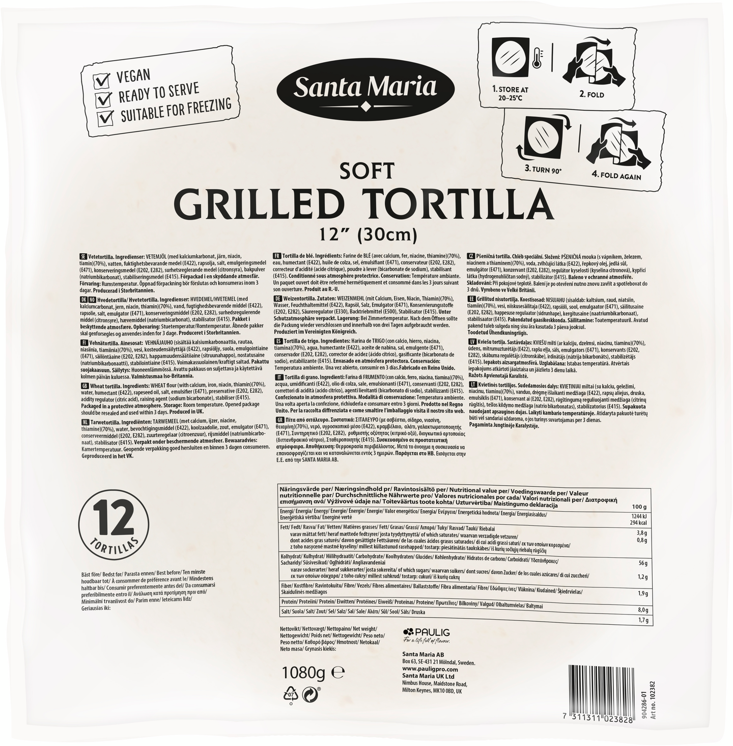 Santa Maria Soft Tortilla Grilled 30cm 1080g/12kpl