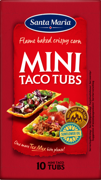 VegaaninenMini Taco Tubs -kuoret tekevät tacojen syömisestä entistä helpompaa. Pieniä kuoria jaksaa myös syödä enemmän, erilaisten täytteiden kera. Mini Taco Tubs -kuoriin valmistat helposti myös erilaisia alku- ja jälkiruokia.