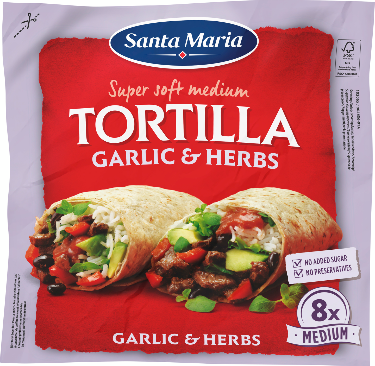 Santa Maria Tortilla Garlic & Herbs Medium (8 pack), vehnätortilla valkosipuli & yrtit, 320g
