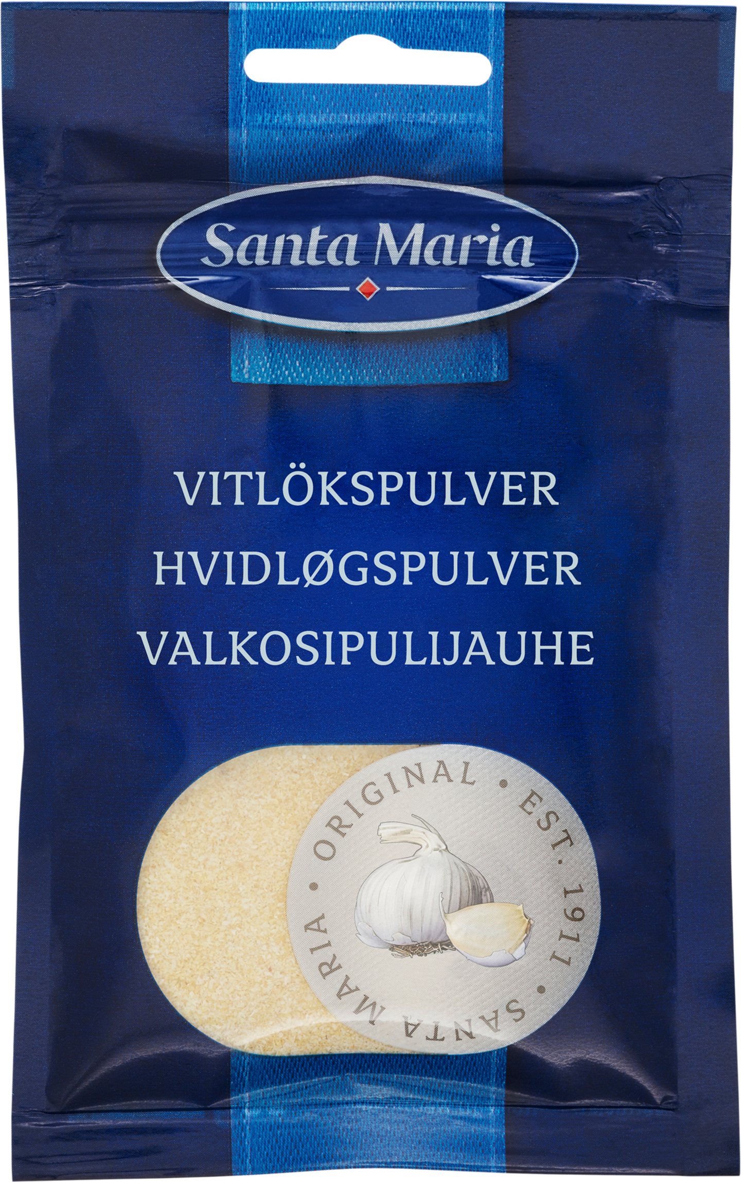 VegaaninenKorkealaatuinen valkosipulijauhe. Valkosipuli on monivuotinen amarylliskasvi. Sipuli koostuu useista pienistä lohkoista, joita arkikäytössä kutsutaan kynsiksi. Kynsiä peittää ohut kuori. Valkosipulinkynsien koko ja lukumäärä vaihtelee valkosipulilajikkeen mukaan. On olemassa myös valkosipulilajikkeita, jotka kynsien sijaan koostuvat yhdestä yhtenäisestä sipulista. Valkosipulijauhe valmistetaan kuivatusta ja jauhetusta valkosipulista. Valkosipulijauhe sopii kaikkeen ruoanlaittoon, jossa käytettäisiin tuoretta valkosipulia. Se antaa hienostuneen ja miedon valkosipulin maun. Valkosipulin aromit vahvistuvat kypsennettäessä. Yksi maustemitta (1/8 tl) vastaa noin yhtä valkosipulinkynttä.