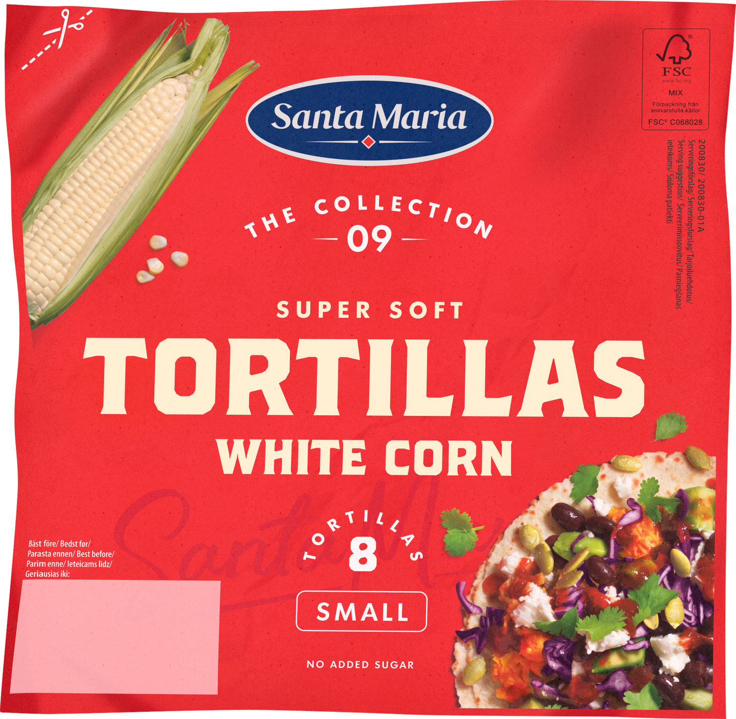 VegaaninenPehmeä valkoinen pieni kokoinen maissitortilla. Klassinen, alkuperäinen valkoisesta maissista valmistettu tortilla. Pienikokoinen tortilla, jossa on ihastuttava, maissille ominainen maku. Santa Maria valkoinen maissitortilla kruunaa Tex Mex-illallisen yhdessä ystävien ja perheen kanssa.