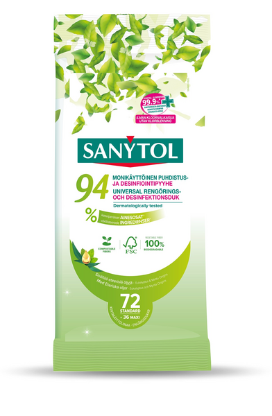 Sanytol yleispuhdistus- ja desinfiointipyyhe 72kpl vege