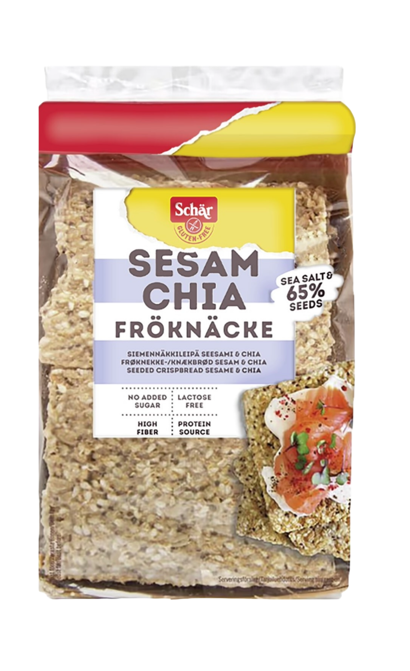 Schärin siemennäkkileipä Sesam & Chia on gluteeniton ja runsaskuituinen näkkileipä. Rapea, vegaaninen näkkileipä, jossa on runsaasti siemeniä, sopii kaikkiin tilanteisiin!