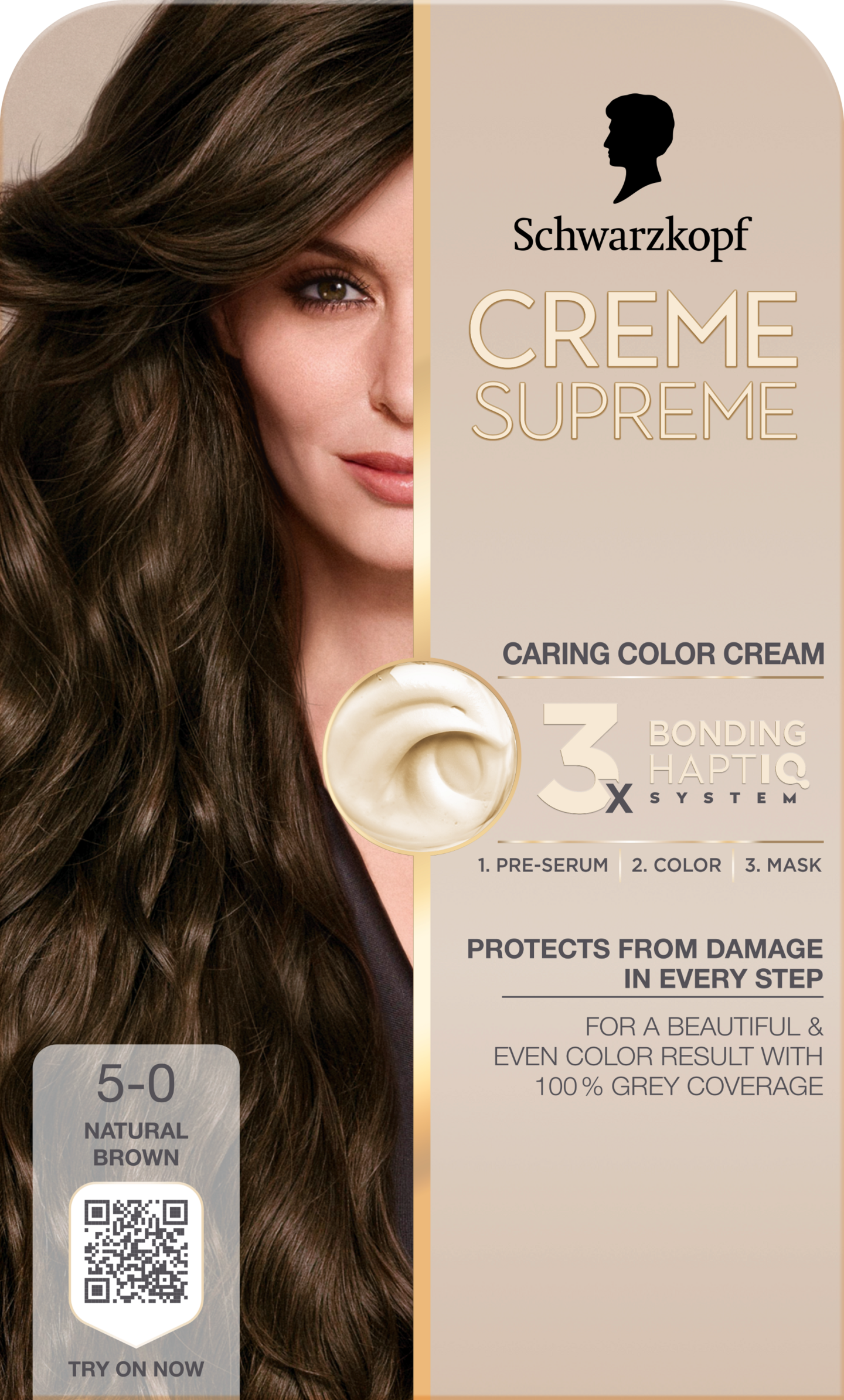 Schwarzkopf Creme Supreme 5-0 Natural Brown - The color you desire with the care you deserve.