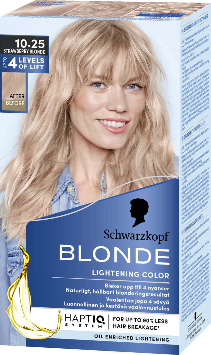 Schwarzkopf 10.25 Strawberry Blonde – vaalentava hiusväri kirkastaa hiuksia jopa 4 astetta ja luo mansikkaisen sävyn hiuksiin.