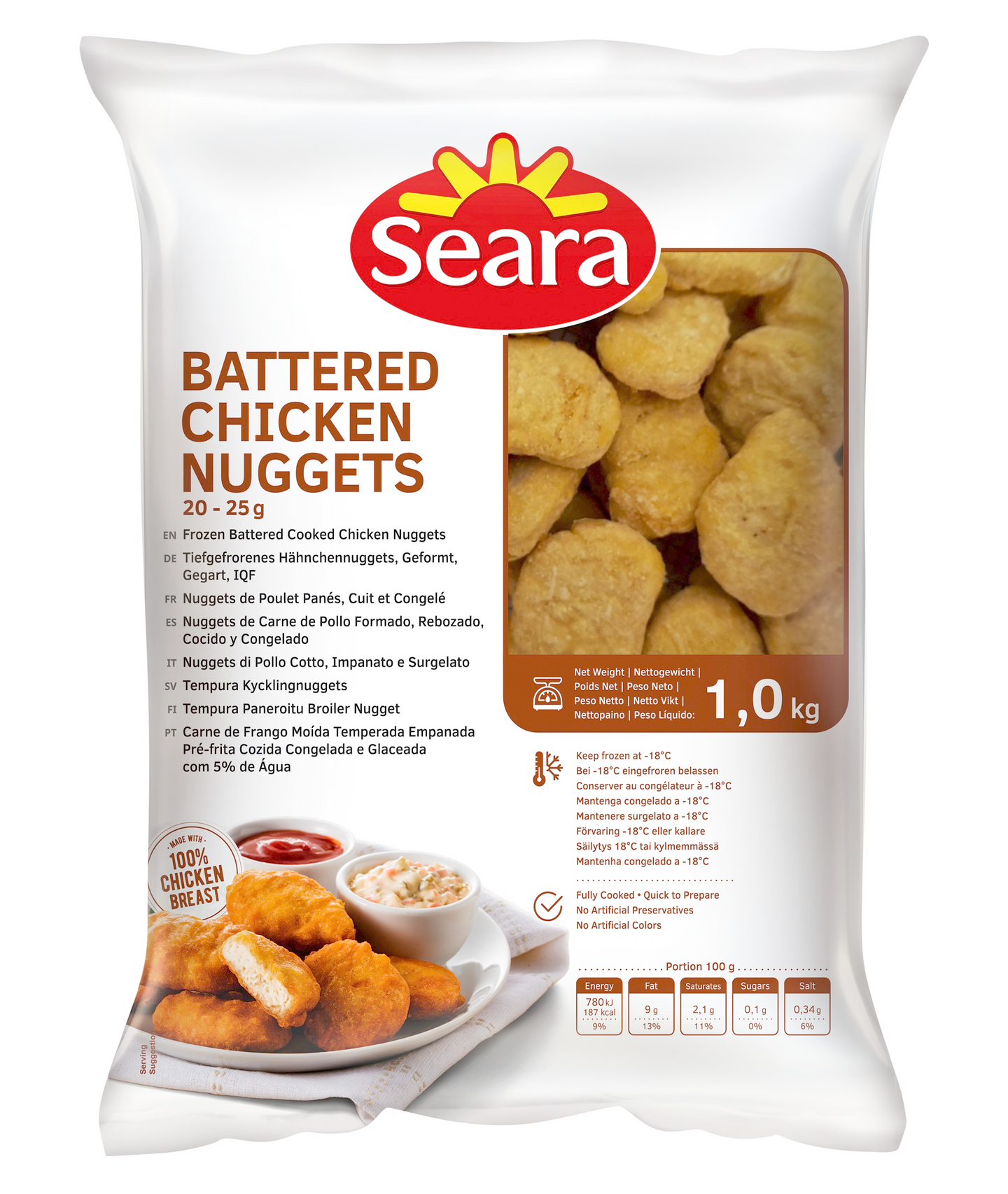 Seara broilerinugetti tempura kypsä 20-25g/1kg irtopakaste