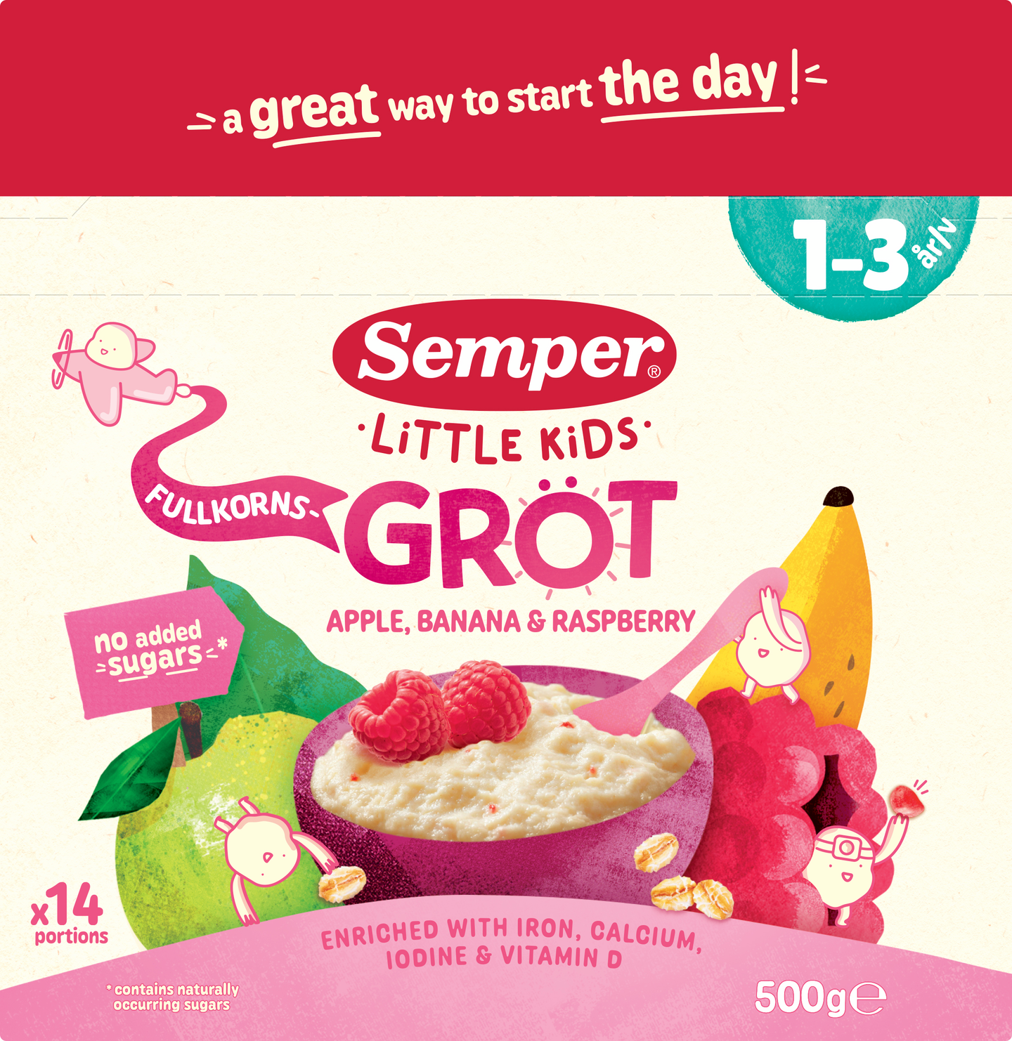 Semper Täysjyväpuuro omena, banaani & vadelma 500g 1-3 v.
