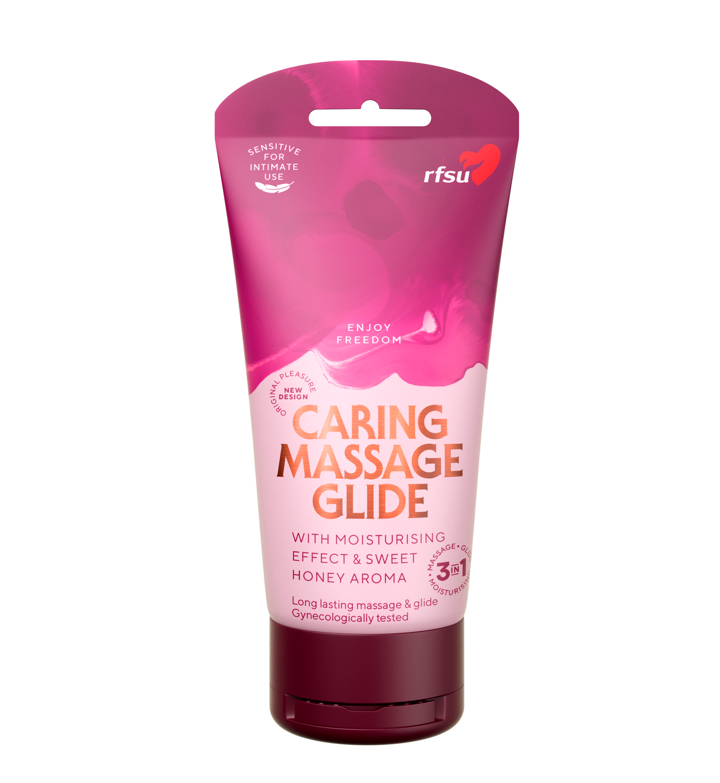 RFSU Sense Me Caring Massage Glide on täydellinen hierontageeli koko vartalolle, mutta toimii hyvin myös liukuvoiteena intiimialueilla. Sen raikas ja miellyttävä tunne rentouttaa tehokkaasti samalla kun vesipohjainen ja parabeeniton koostumus takaa turvallisuuden. RFSU Sense Me Caring Massage Glide on syötäväksi sopiva, väritön ja helposti pestävä.