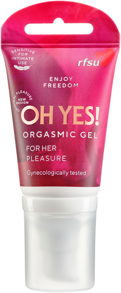 RFSU Oh Yes -stimuloiva geeli on naisen maksimaaliseen nautintoon suunniteltu tuote. Oh Yes voi vilkastuttaa intiimialueen verenkiertoa ja näin lisätä tuntoherkkyyttä. Hellävarainen geeli sisältää l-arginiinia, ornitiinia ja brasilialaista ginsengiä, ja tuote voi helpottaa orgasmin saamista.
