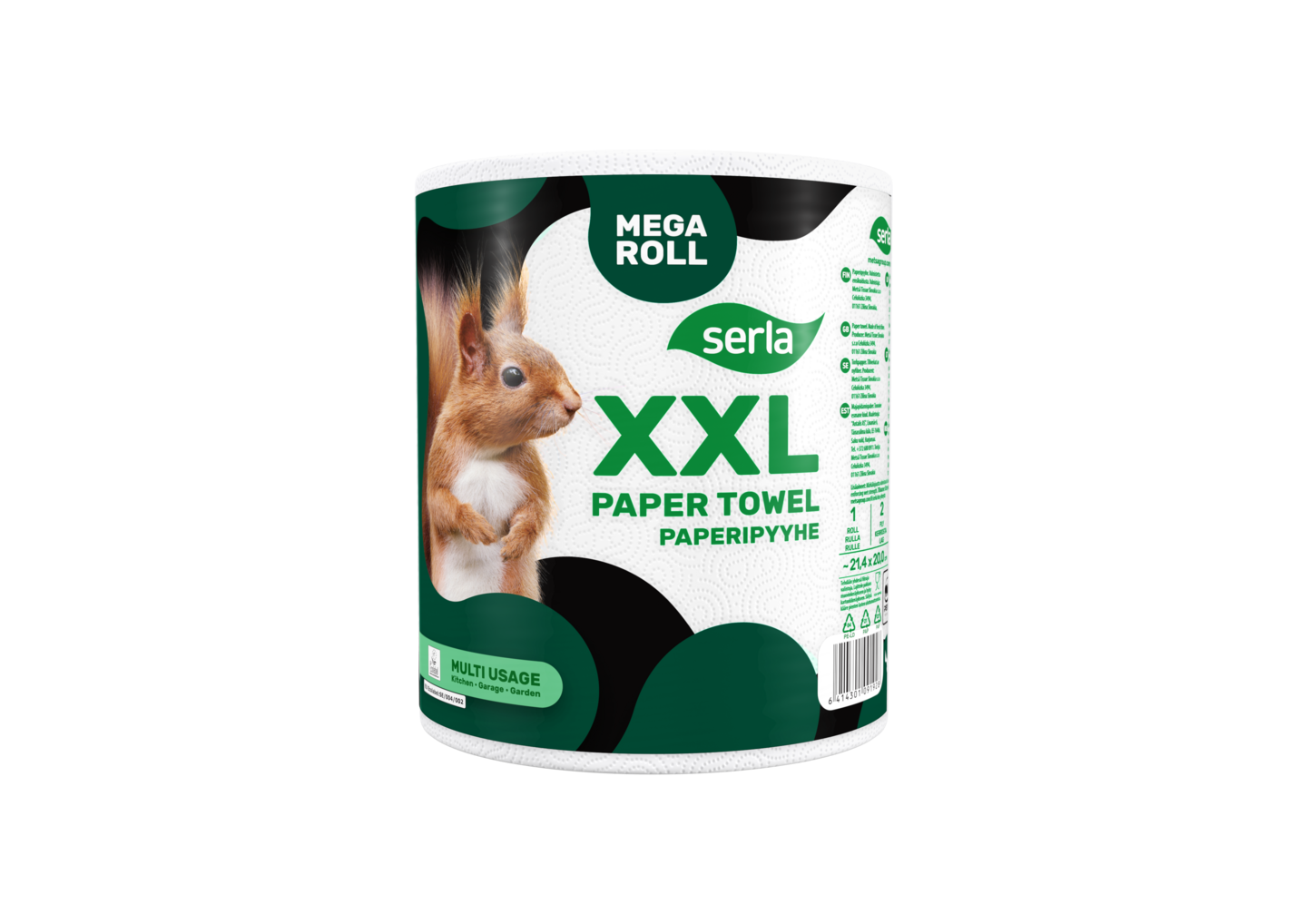 Serla XXL on vahva rulla paperia, joka kestää pitkään. Kuin luotu kovaan käyttöön ja haastaviin tilanteisiin. Käytä sitä esimerkiksi keittiössä, autotallissa tai puutarhassa – missä ikinä tarvitsetkaan luotettavaa paperia. Yksi Serla XXL -rulla vastaa 7 normaalia Serla talouspaperirullaa. Valmistettu ensikuidusta. Tästä rullasta ei paperi ihan heti lopu!