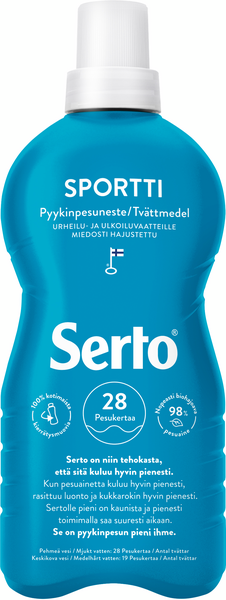 Hellävaraista raikkautta teknisille tekstiileille. Serto Sportti Pyykinpesuneste on suunniteltu erityisesti herkkien teknisten kuitujen ja kalvojen puhdistukseen. Se pesee hellävaraisesti niin treenivaatteet, tuulta ja vettä hylkivät ulkoilupuvut (esim. GoreTex-kankaat), kuin lastenhaalaritkin. Pyykinpesunesteen raikas tuoksu neutraloi tehokkaasti hienhajua, ja sen erityinen värisuoja pitää tekstiilien värit kirkkaina. Ei sovellu villalle ja silkille.