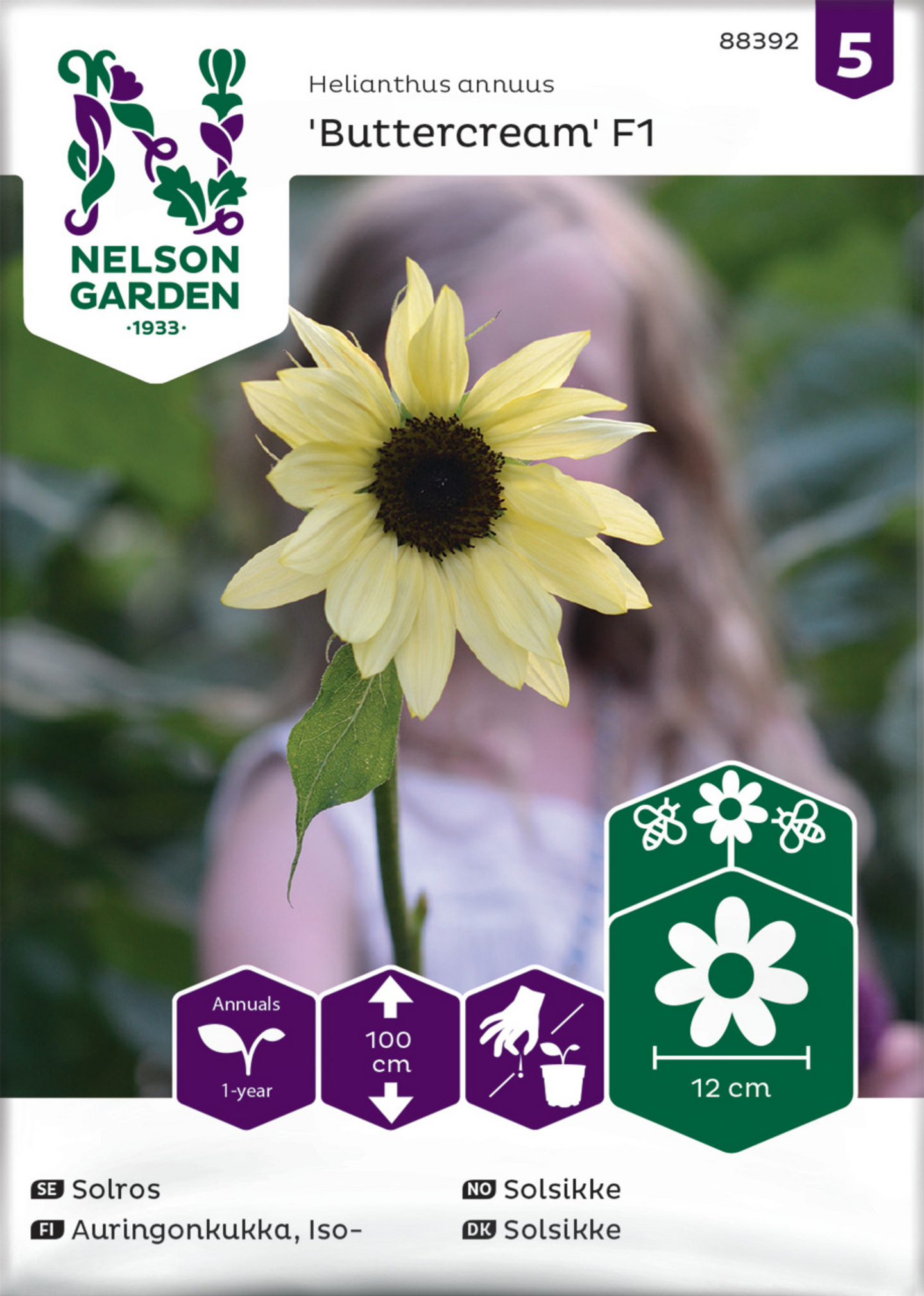 Helppokasvuinen auringonkukka, kauniit vaaleankeltaiset kukat. Upea kimpuissa, ja koska lajike ei tuota siitepölyä, ei tahraa pöytäliinaa. Saattaa tarvita tukea.