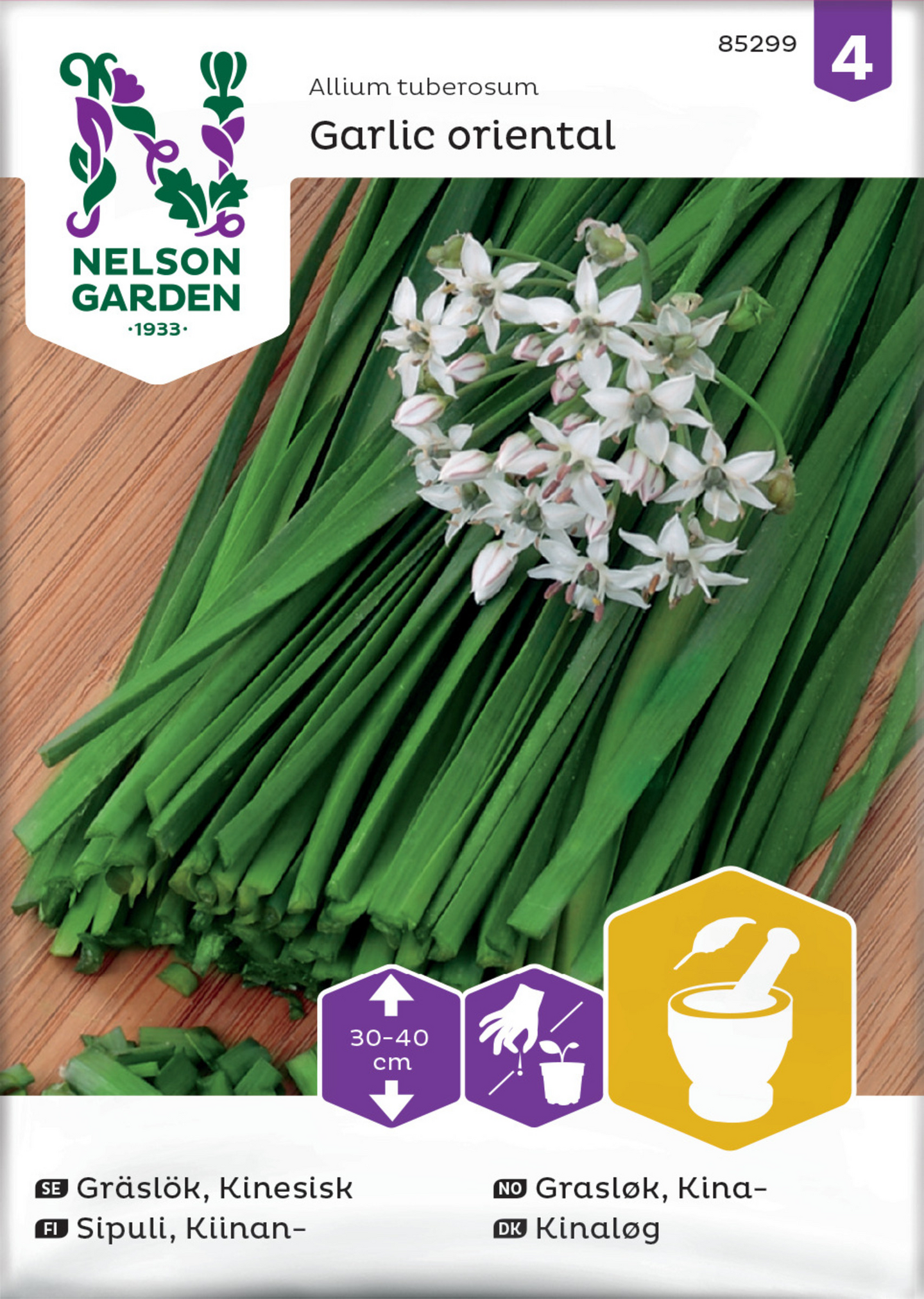 Tavallista harvinaisempi ja maukkaampi ruohosipulilajike. Maku on mausteisempi ja hieman valkosipulinen. Varren päässä kukat ovat pienet ja valkoiset. Korjaa lehtiä vähitellen ja käytä tuoreena salaattiin, kylmiin kastikkeisiin tai koristeeksi. Varmista talvehtiminen peittämällä taimet.