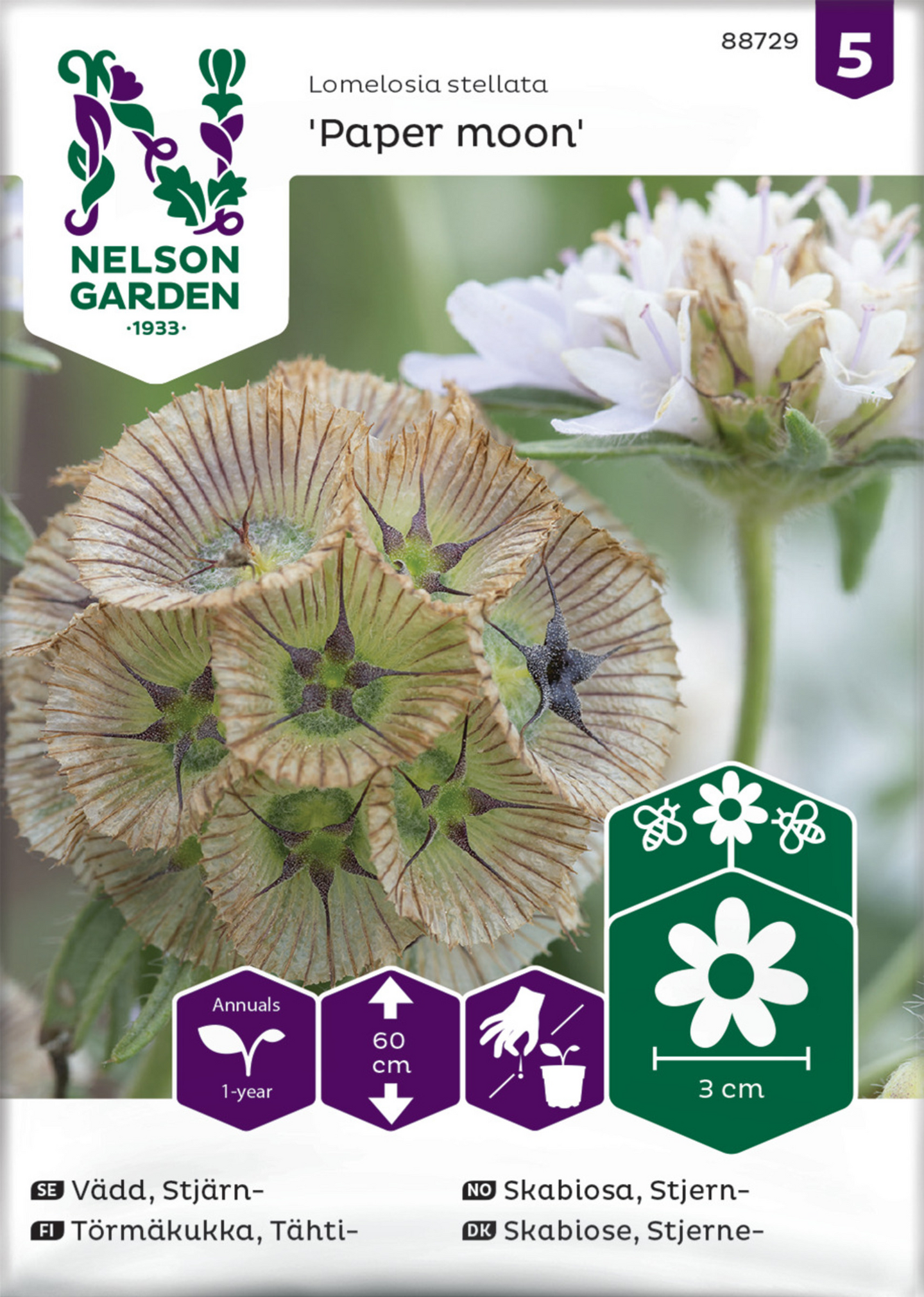 Kaunis ja erikoisen näköinen törmäkukka. Tekee valkoisen kukan, joka lakastuu pian ja muuttuu kauniisti tähden muotoiseksi. Voi tarvita tukea. Kuivata talvikimppuja varten.
