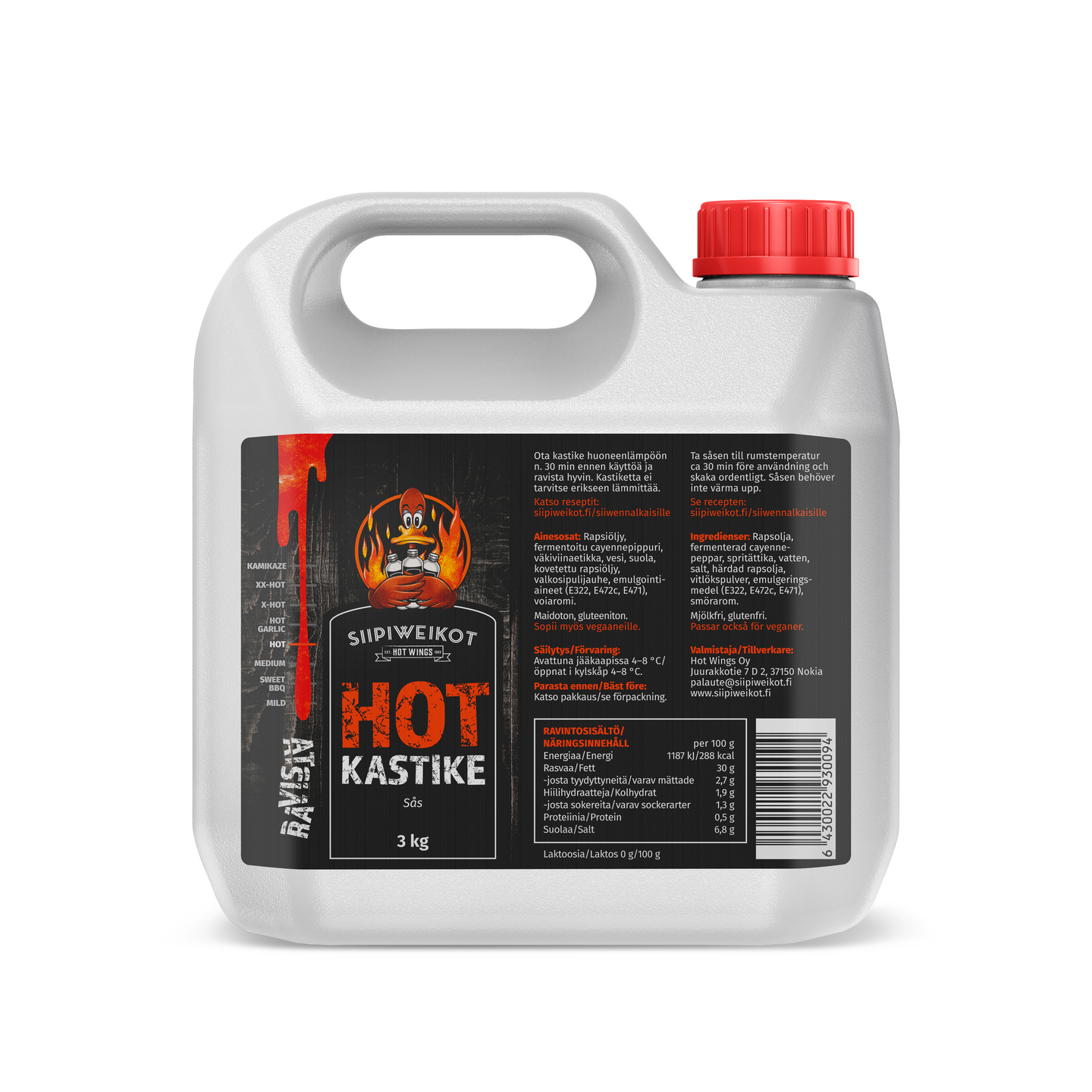 Hot-kastike on maultaan täyteläinen, pehmeä ja siinä vivahdus etikasta voimistuu. Hotissa myös polte lisääntyy Mediumiin verrattuna. Hot-kastikkeen kohdalla ei voi puhua polttavasta kastikkeesta, mutta pientä poltetta alkaa pikkuhiljaa löytymään. Siipiweikkojen oranssi väri on lähtöisin Hot-kastikkeen väristä. Myös Hot-kastike on löytänyt oman käyttäjäkuntansa. Hot-kastike sopii myös ruisleivän päälle tai kuulemma aamupuuroonkin, vaikka jälkimmäistä emme voi suositella testaamatta.