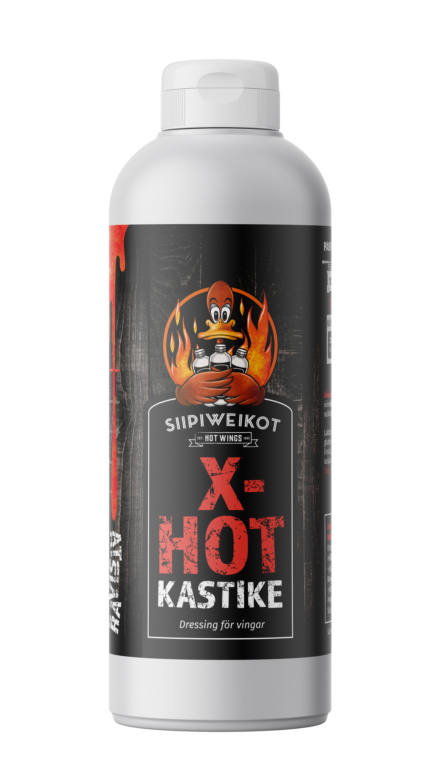 VegaaninenTästä kastikkeesta kaikki on lähtenyt liikkeelle vuonna 1993. Etikan maku ja suola maistuvat kastikkeessa vahvoina. Toisaalta nämä kaksi ainesosaa ovat myös ne ainekset, jotka leikkaavat siiven rasvan ja antavat maun. Tässä alkaa olla jo hienoisesti potkua. Yleensä yksi siipi ei ole haastava, mutta maku ja tulisuus kertaantuvat siipien mukana. Siinä vaiheessa, kun kymmenen siipeä on takana voi jo huomata, että potkua tässä kastikkeessa on monelle tarpeeksi ja joillekin jopa liikaa. Siipiweikkojen X-Hot-kastikkeella on oma vakiintunut käyttäjäkuntansa, joista tunnollisimmat ovat käyttäneet sitä siivissään 90-luvun alkupuoliskolta lähtien, eivätkä ole tästä pois vaihtamassa.