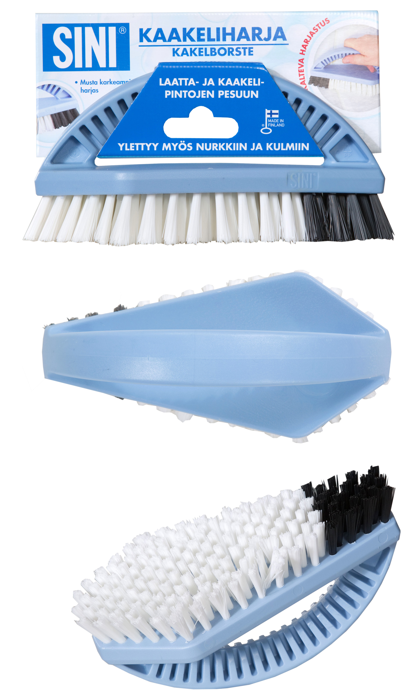 Pese kylppärin ja saunan laattapinnat puhtaaksi Kaakeliharjalla. Tukevasta kädensijasta saa hyvän otteen ja napakat harjakset pureutuvat tehokkaasti pinttyneeseenkin likaan.