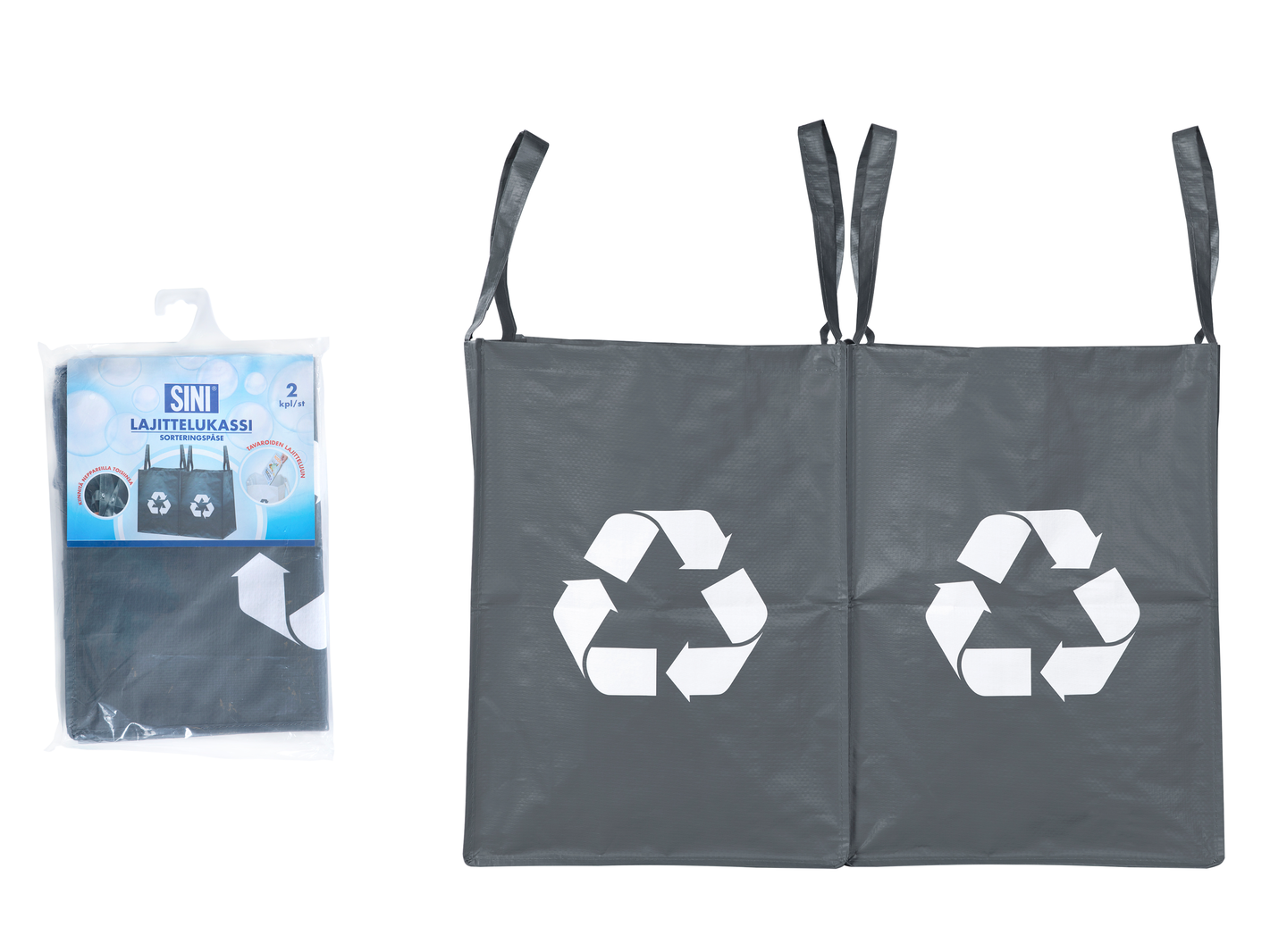 Sini lajittelukassit ovat suunniteltu erilaisten kierrätettävien materiaalien lajitteluun ja kuljettamiseen. Kestävässä kassissa on tukevat kantokahvat ja nepparit,millä kassit voidaan kiinnittää toisiinsa. Lajittelukassit sopivat esim. paperin, pahvin, metallin ja lasin lajitteluun. Lajittelukassit sopivat myös tavaroiden säilytykseen. Saatavana kahdessa värissä, valkoisena ja harmaana. Korkeus 47,5 cm Leveys 34 cm Syvyys 34 cm Litratilavuus 55L