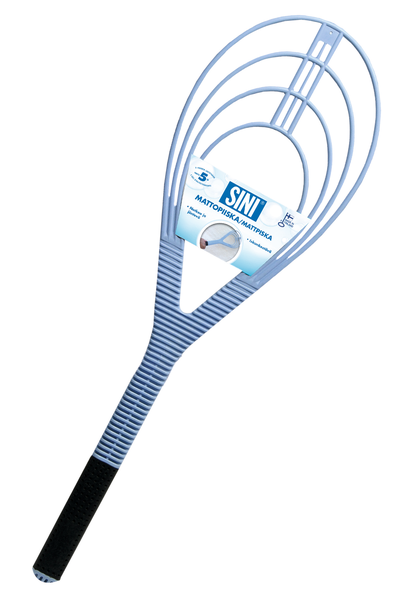 Pitkävartinen mattopiiska antaa lyönnille voimaa ja pehmustetun kädensijan ansiosta se istuu hyvin käteen.