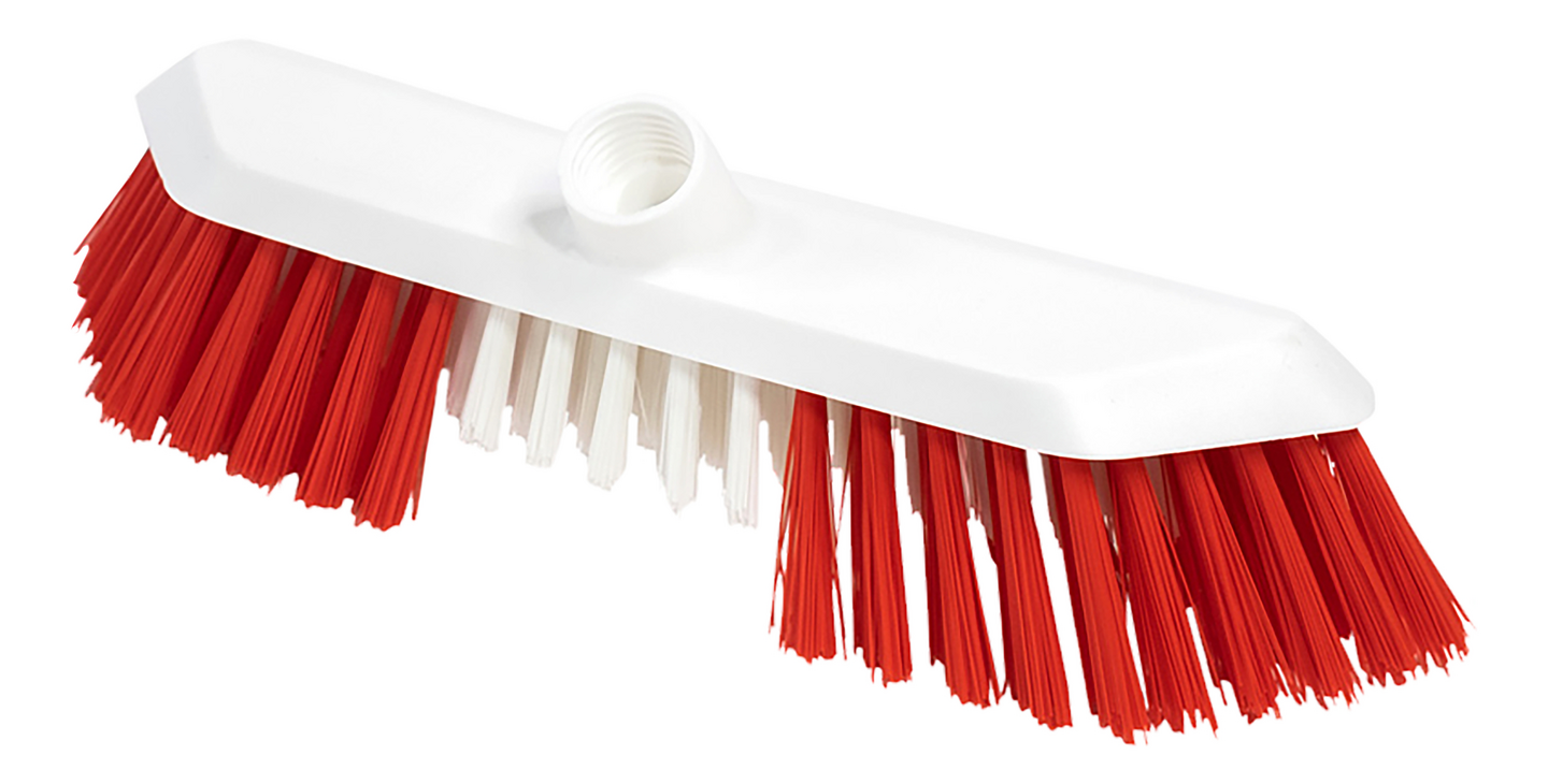 Yleiskierteellä varustettu pesuharja lattiapintojen pesuun, jossa on keskellä lyhyemmät harjakset. Ammattikäyttöön.