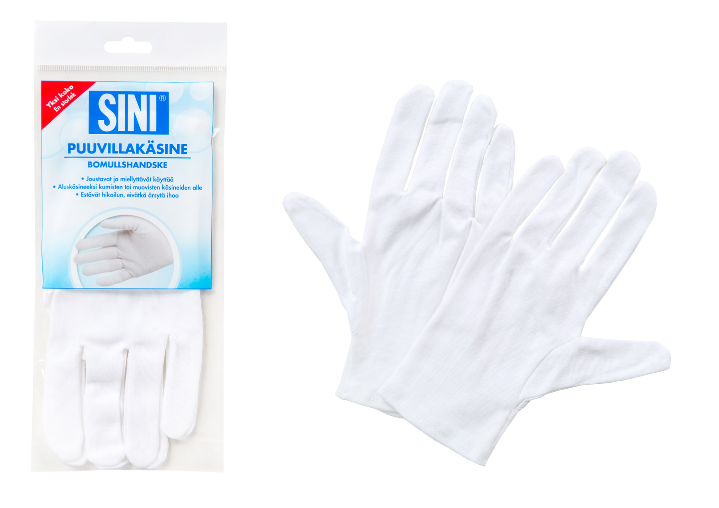 Puuvillakäsineet ovat miellyttävän tuntuiset ja sopivat erinomaisesti alus-ja suojakäsineiksi kumisten tai muovisten käsineiden alle.