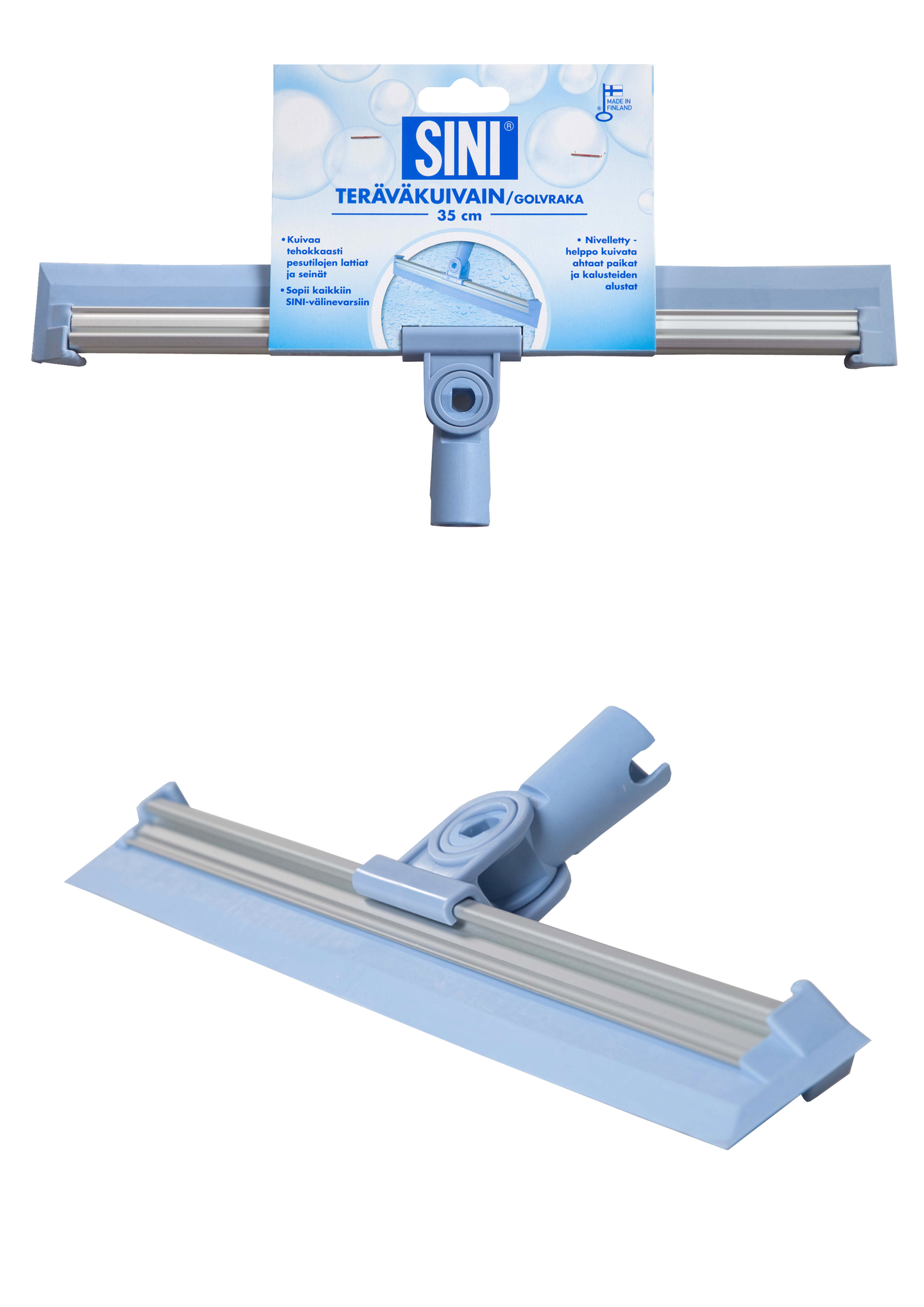 Liitä teräväkuivain SINI-varteen ja kuivaa pesuhuoneen lattiat ja seinät ilman kumartelua tai kurkottelua. Näppärä teräväkuivain taipuu kalusteiden alle ja mahtuu ahtaisiinkin paikkoihin kääntyvän nivelen ansiosta.